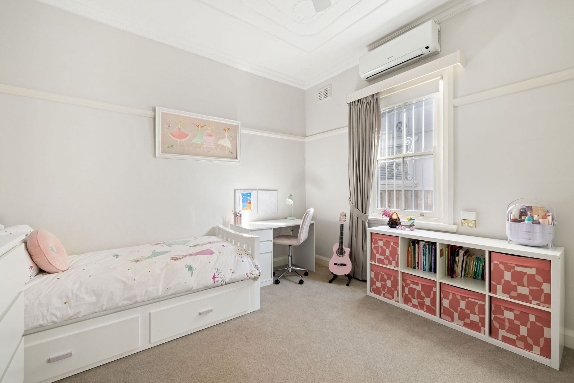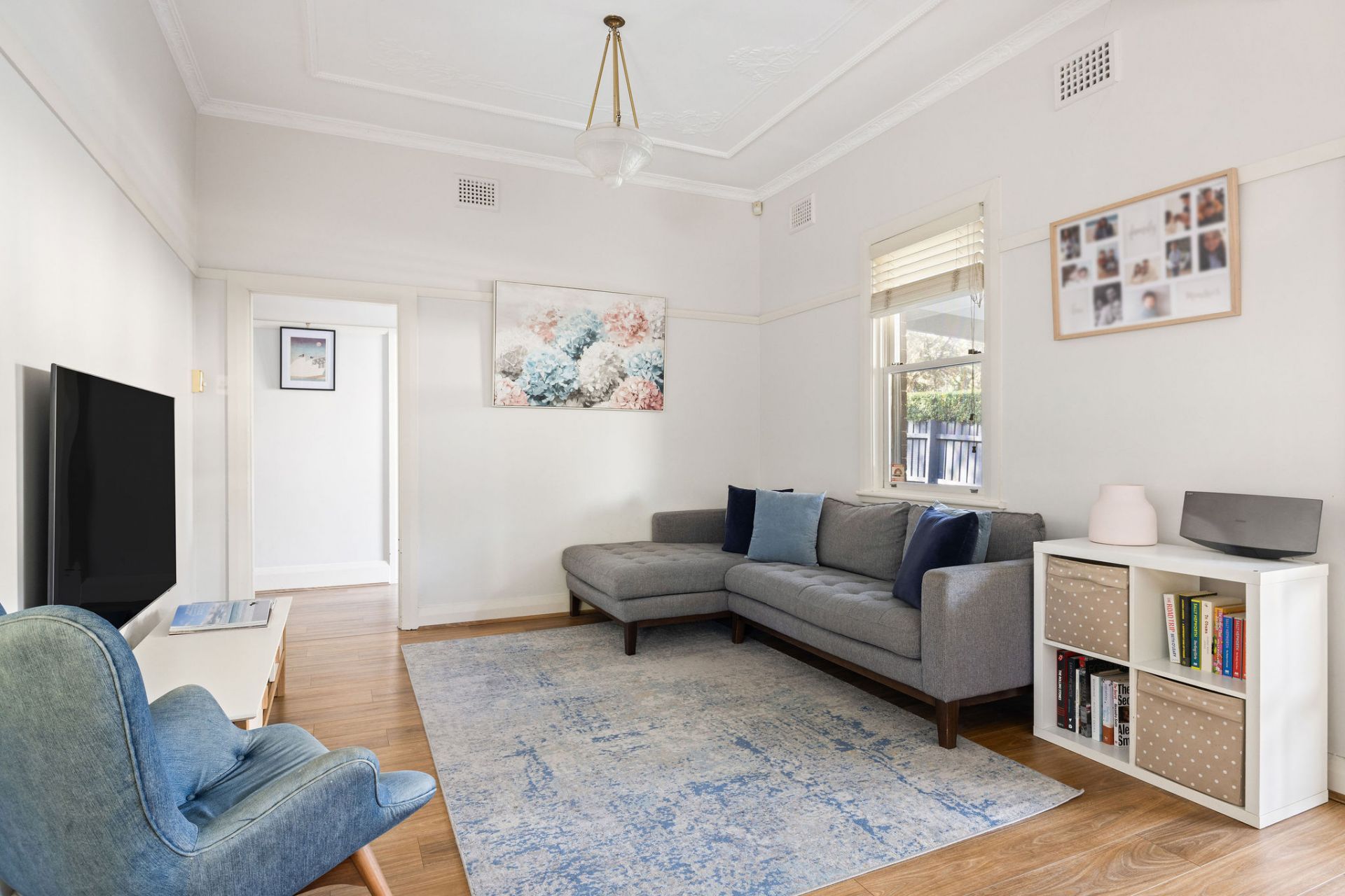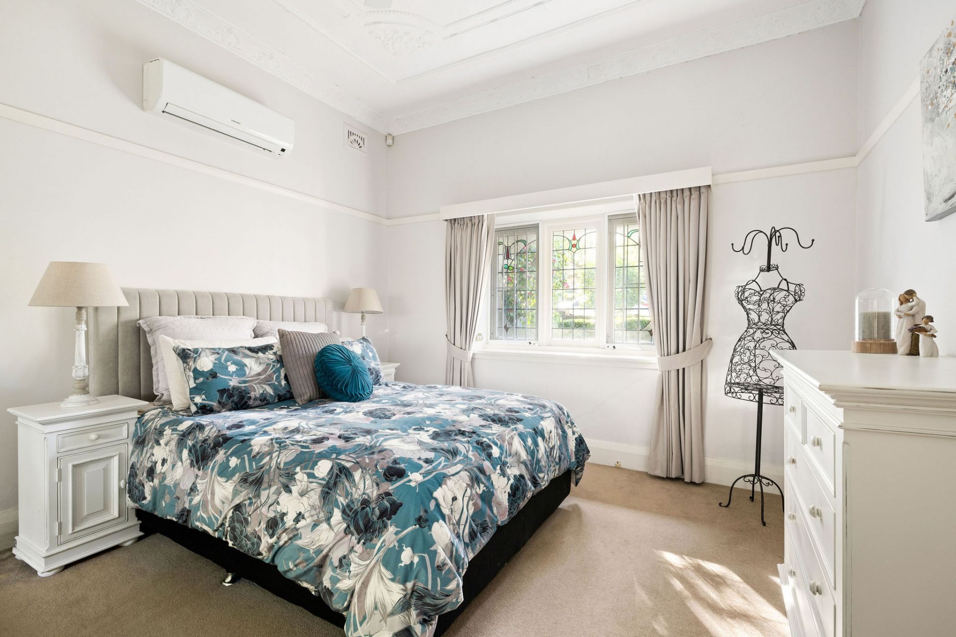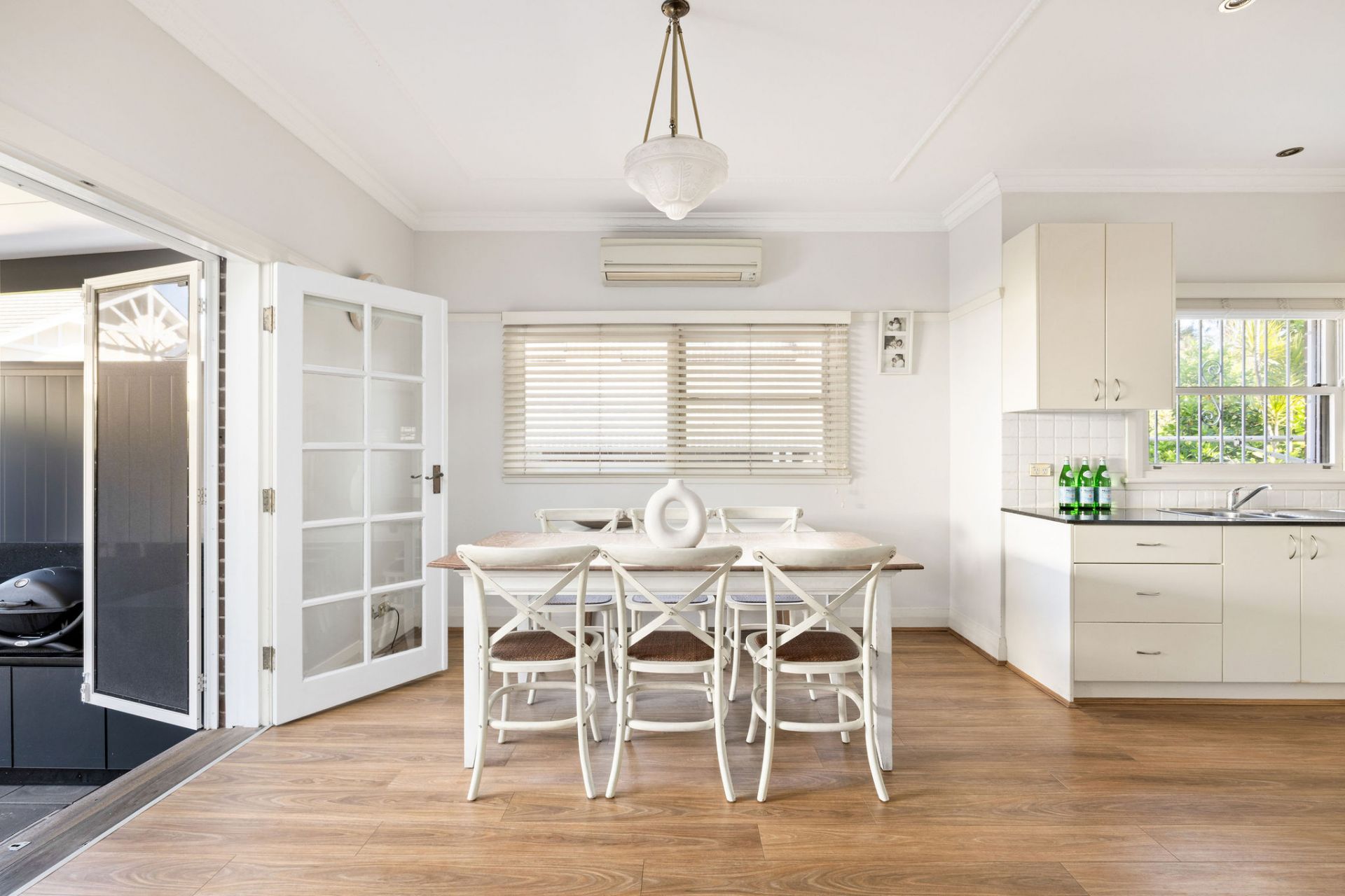 High patterned ceilings, timber floors and air conditioned