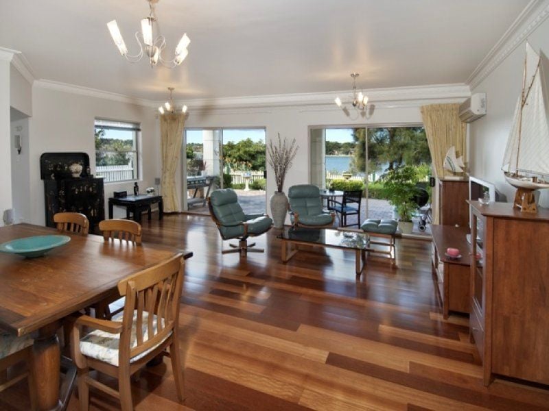 Overlooking the glistening waters of Canada Bay this single level waterfront home boasts picturesque outdoor entertaining from a huge wrap around courtyard literally metres from the water's edge. Offering sophisticated premium living space & surrounded by waterfront walkways, parklands, cafes, restaurants & ferries to the city. This truly is low maintenance waterfront living at its finest!