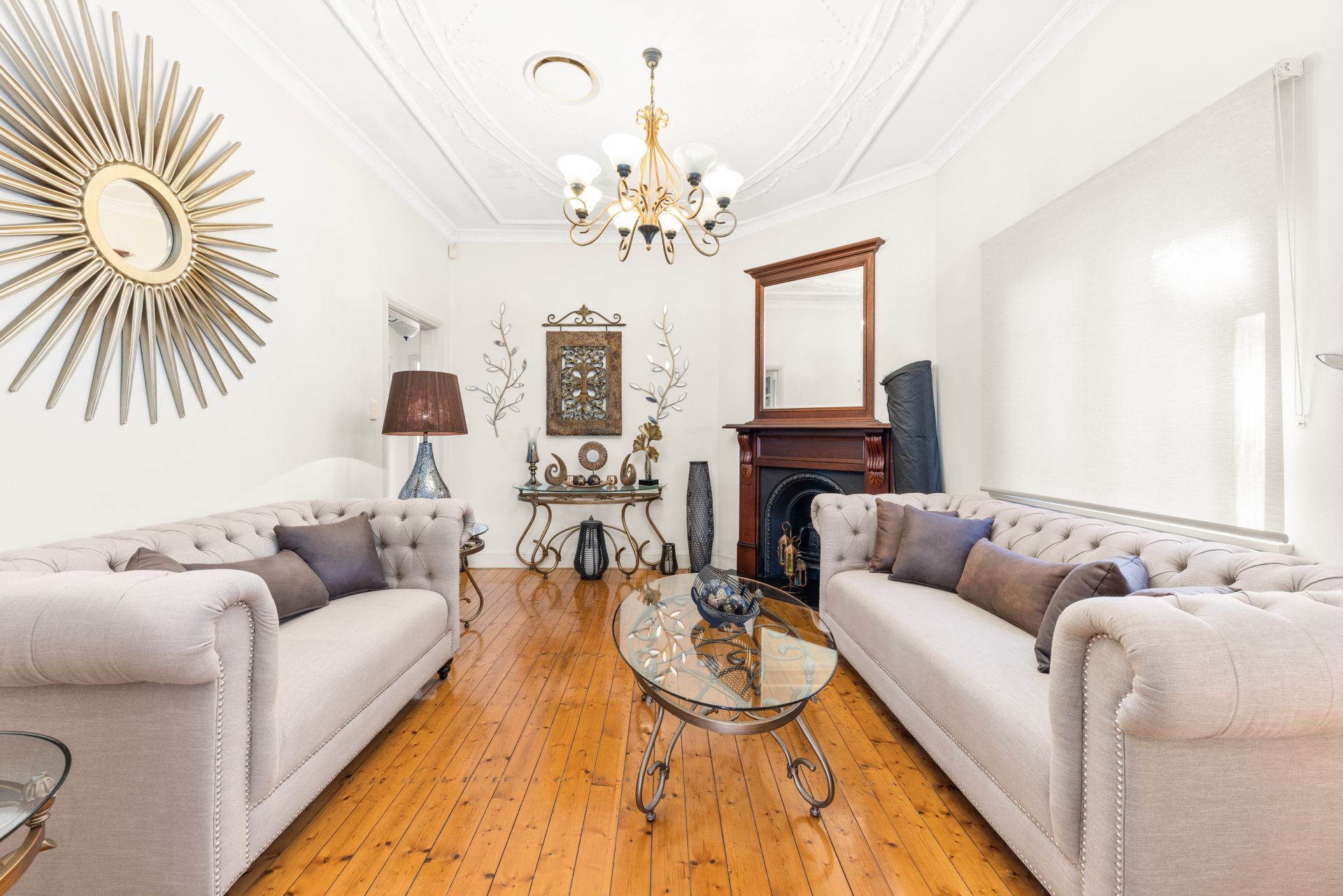- Polished timber floorboards throughout