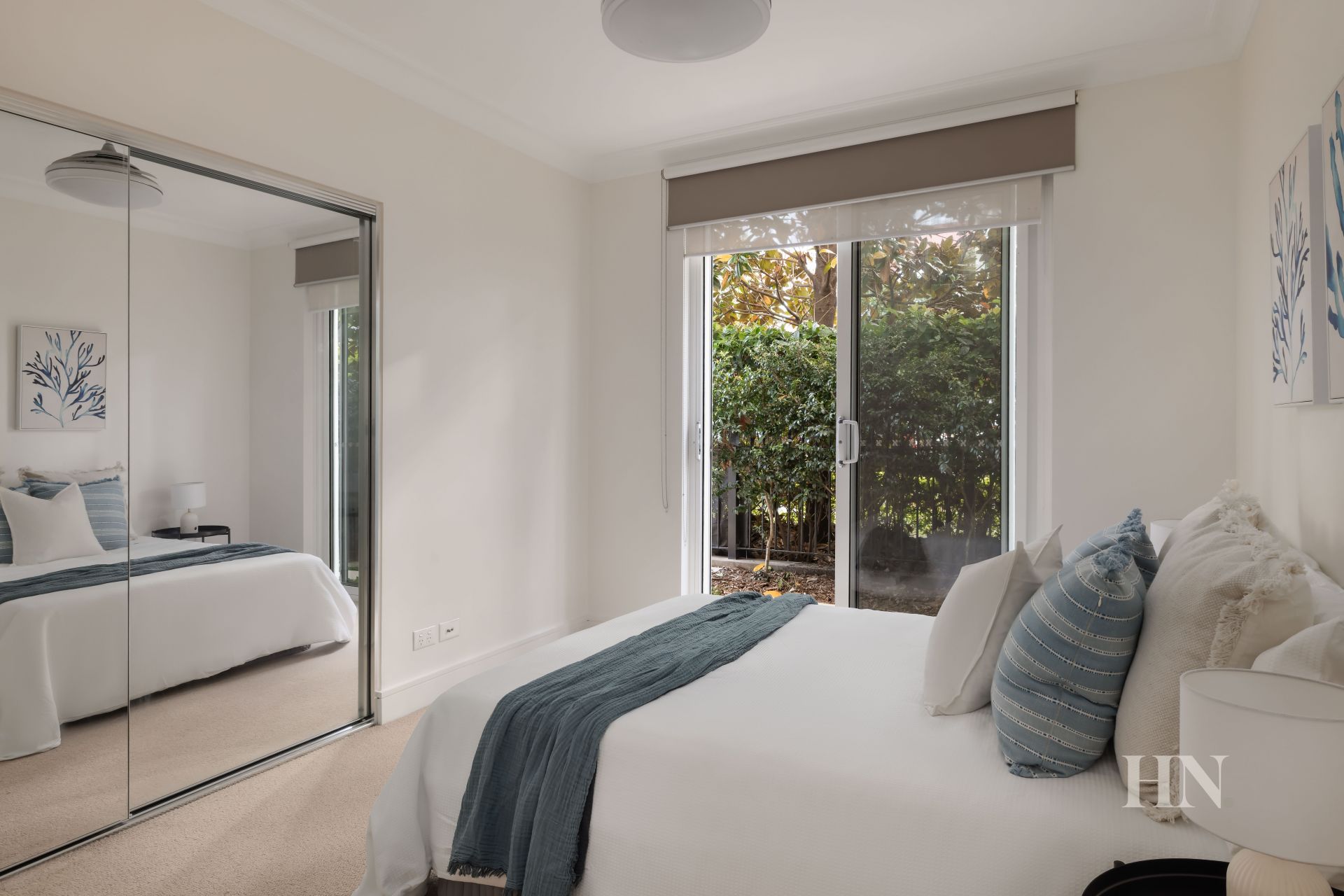 Two peaceful bedrooms both have courtyard access
