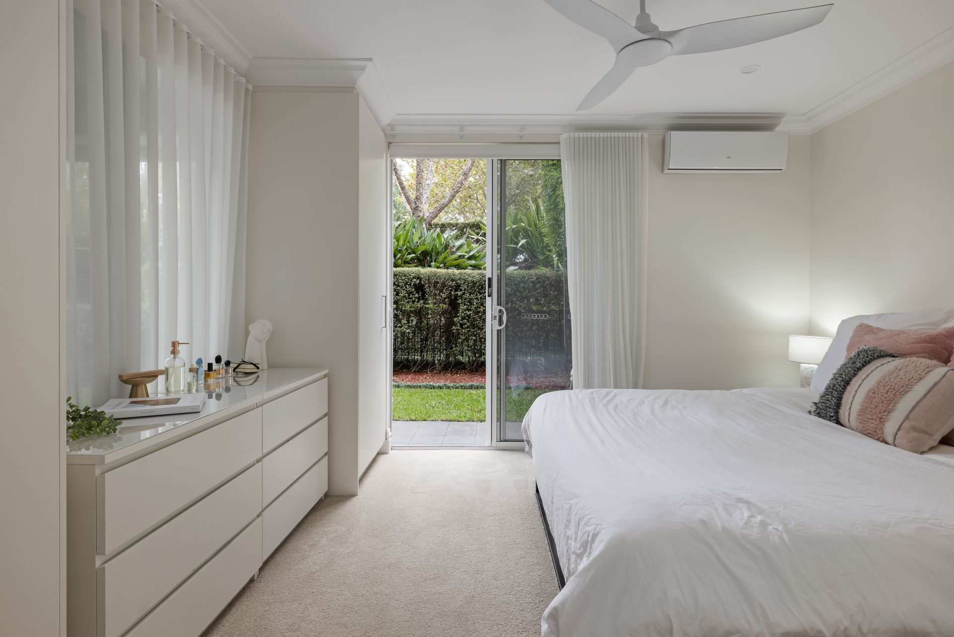 Floor to ceiling sliding glass to a terrace