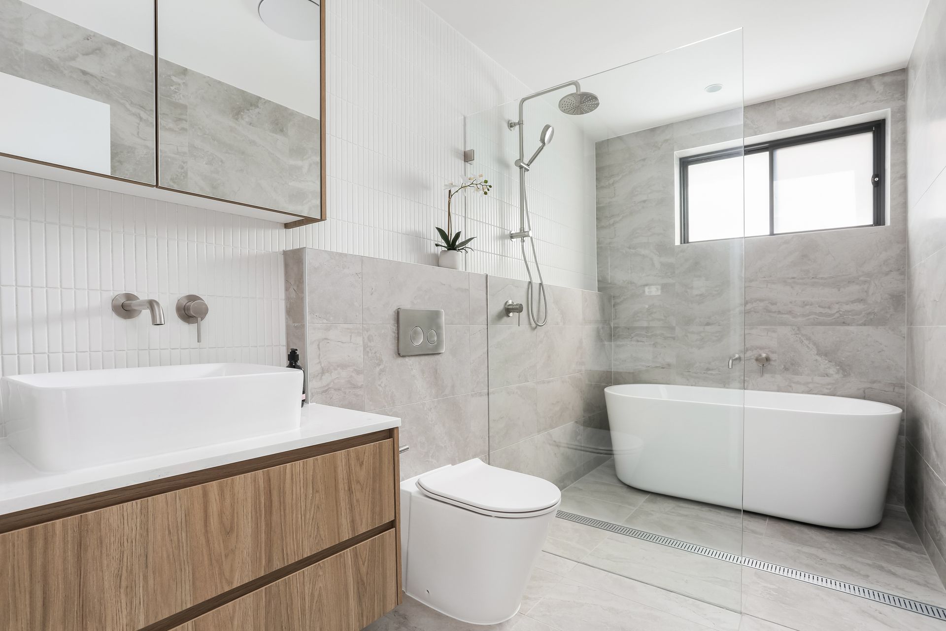 Designer bathrooms with shower and bathtub