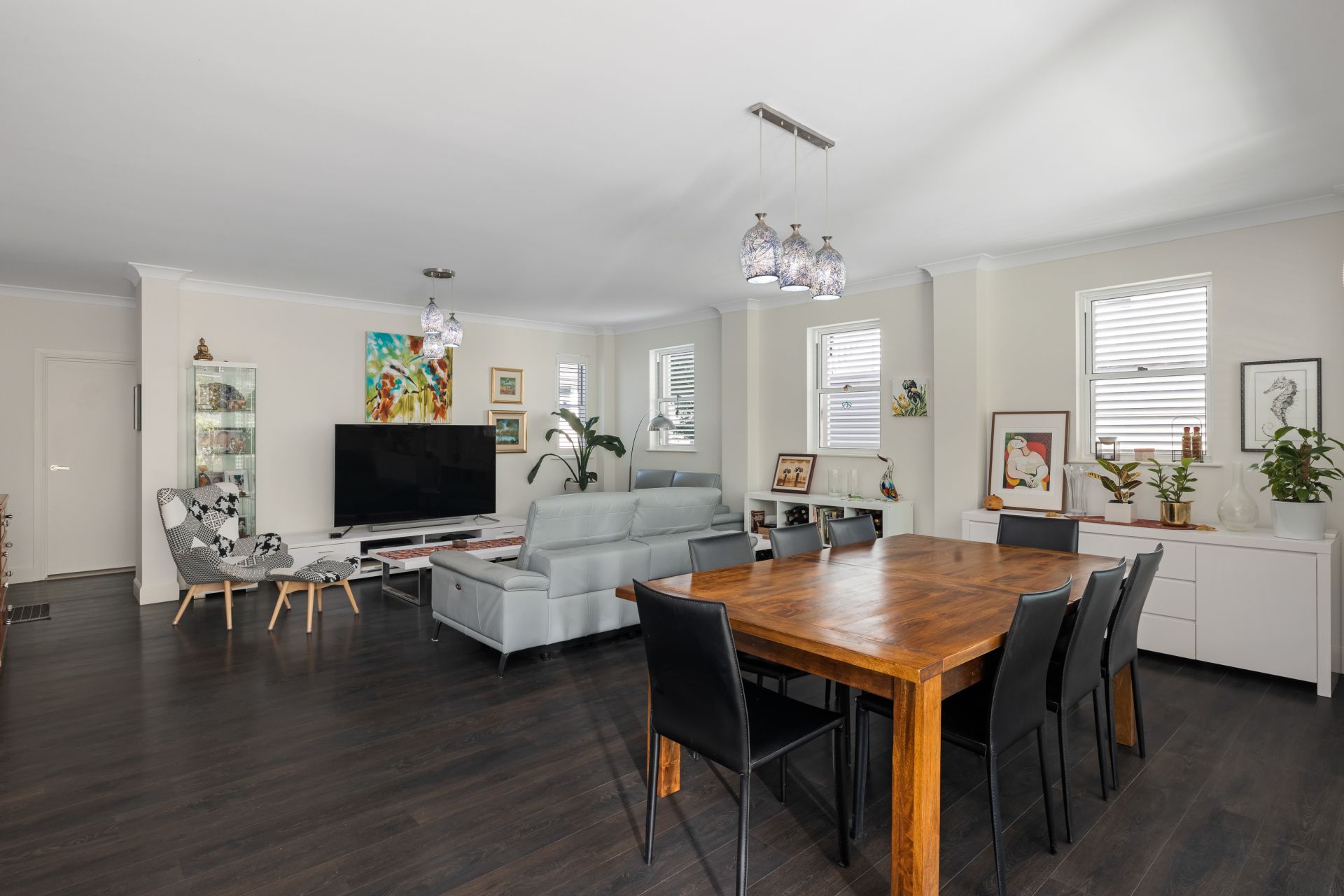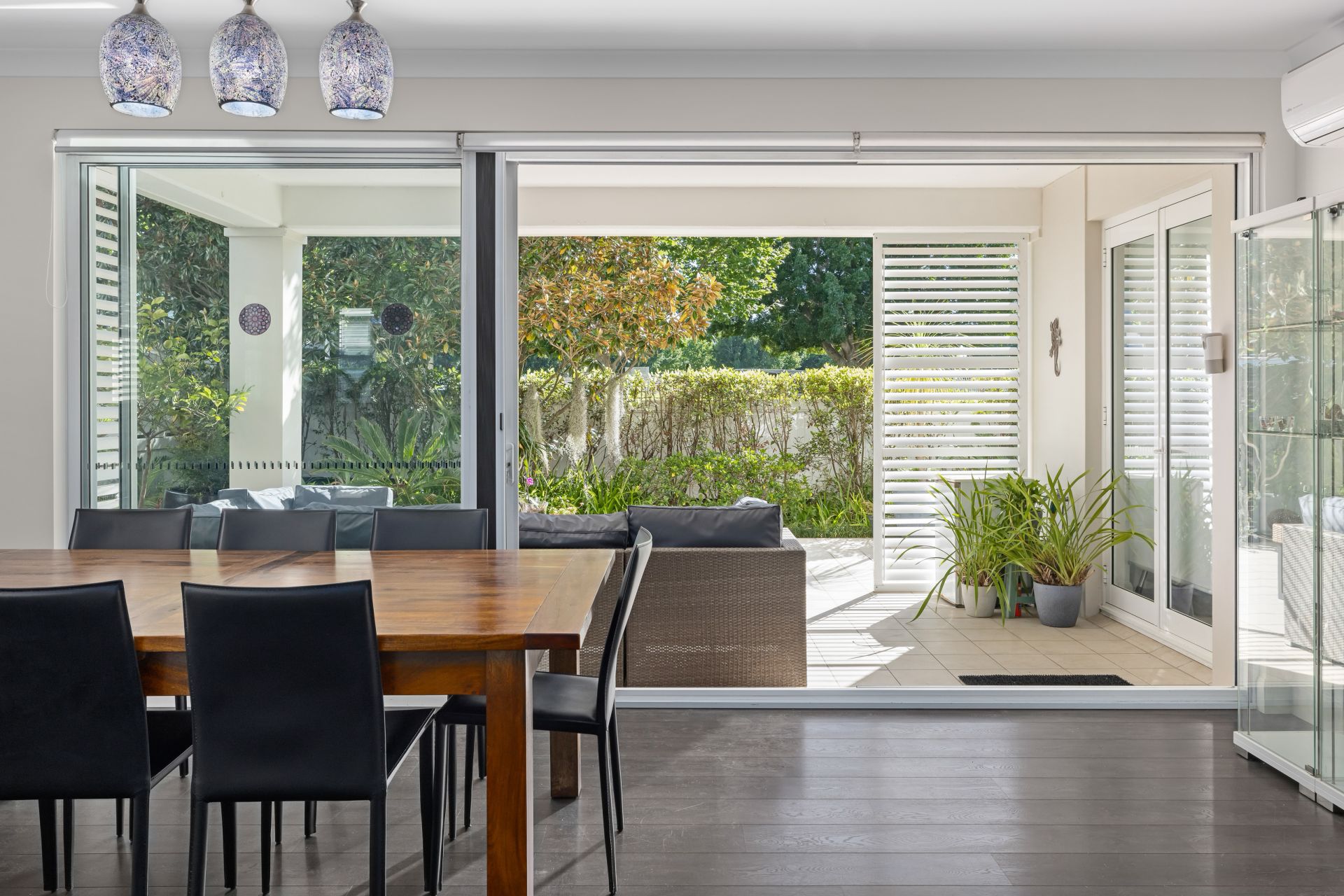 Stunning dark timber flooring and air conditioned