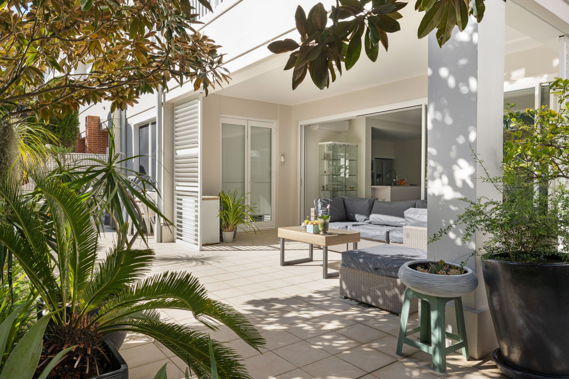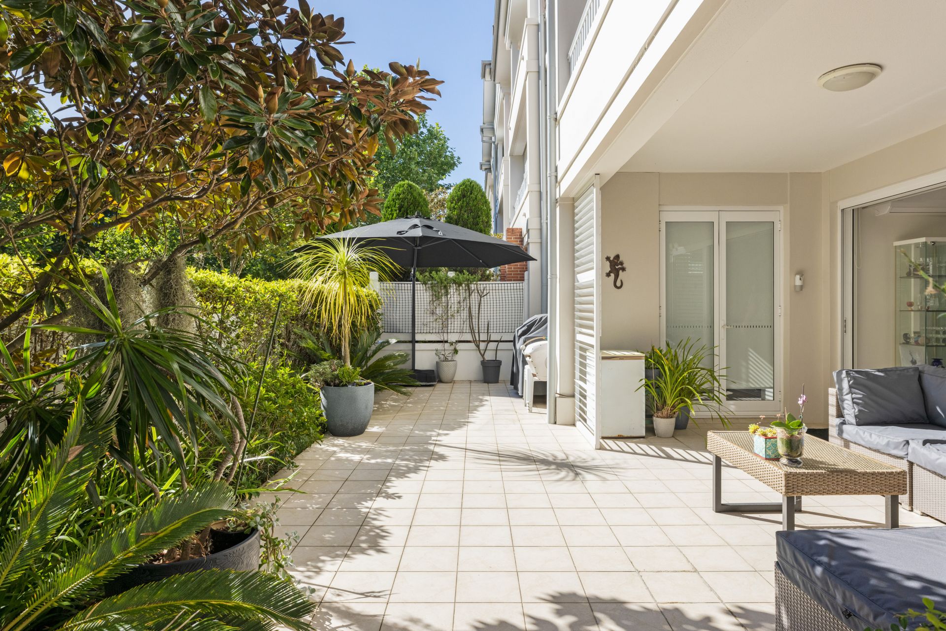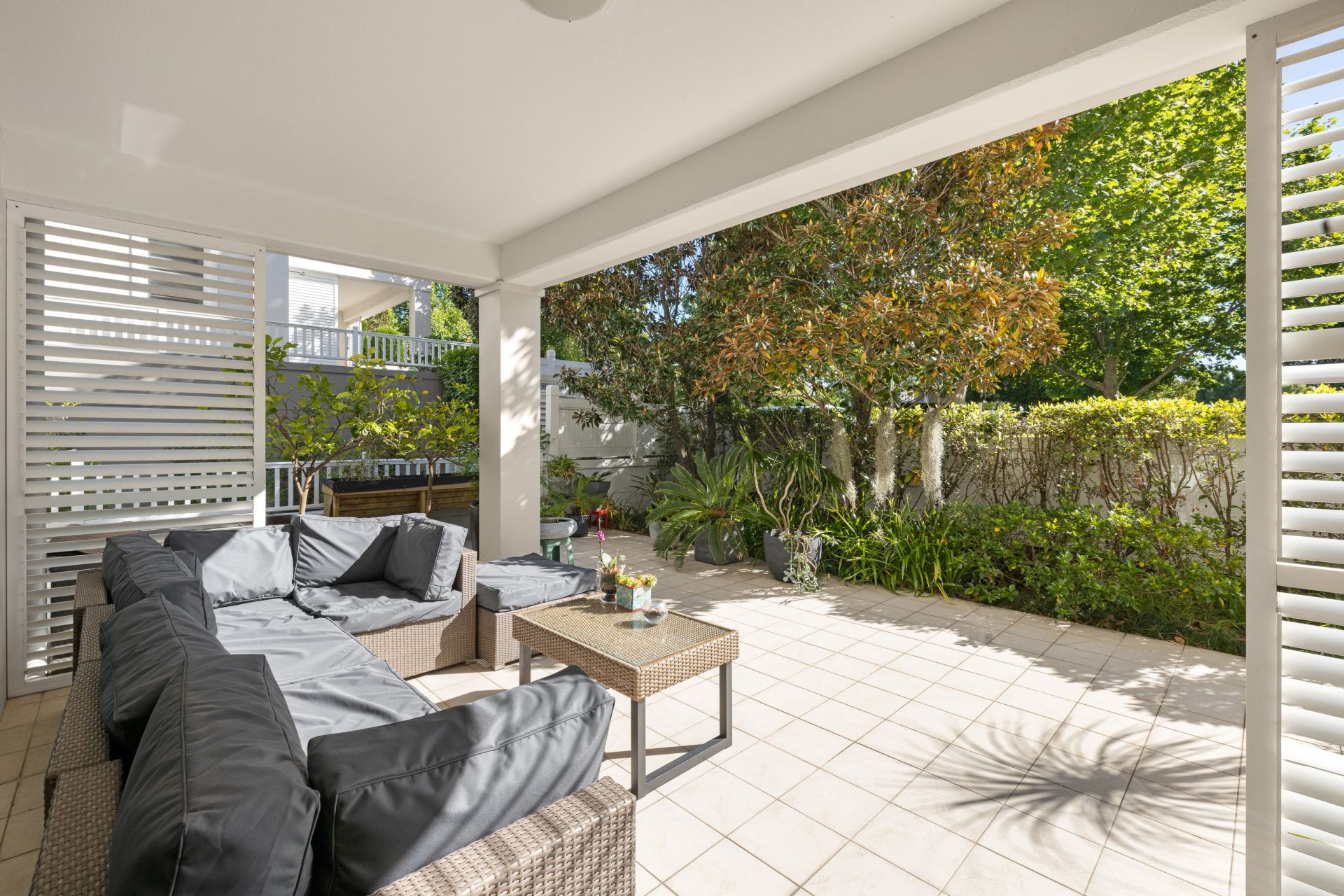 Living opens to a partially covered garden terrace