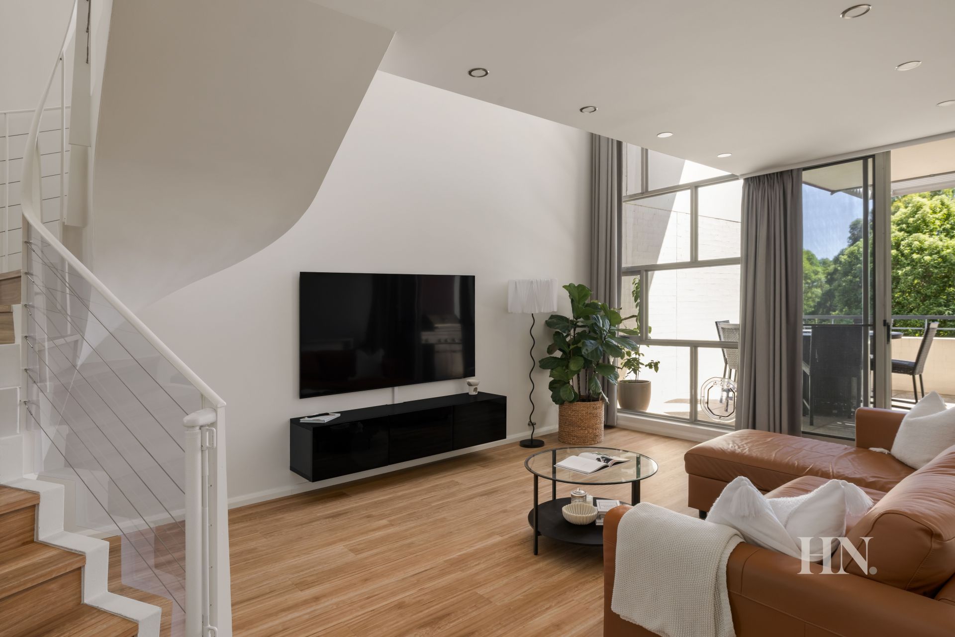A light-filled penthouse with a stylish two-level design