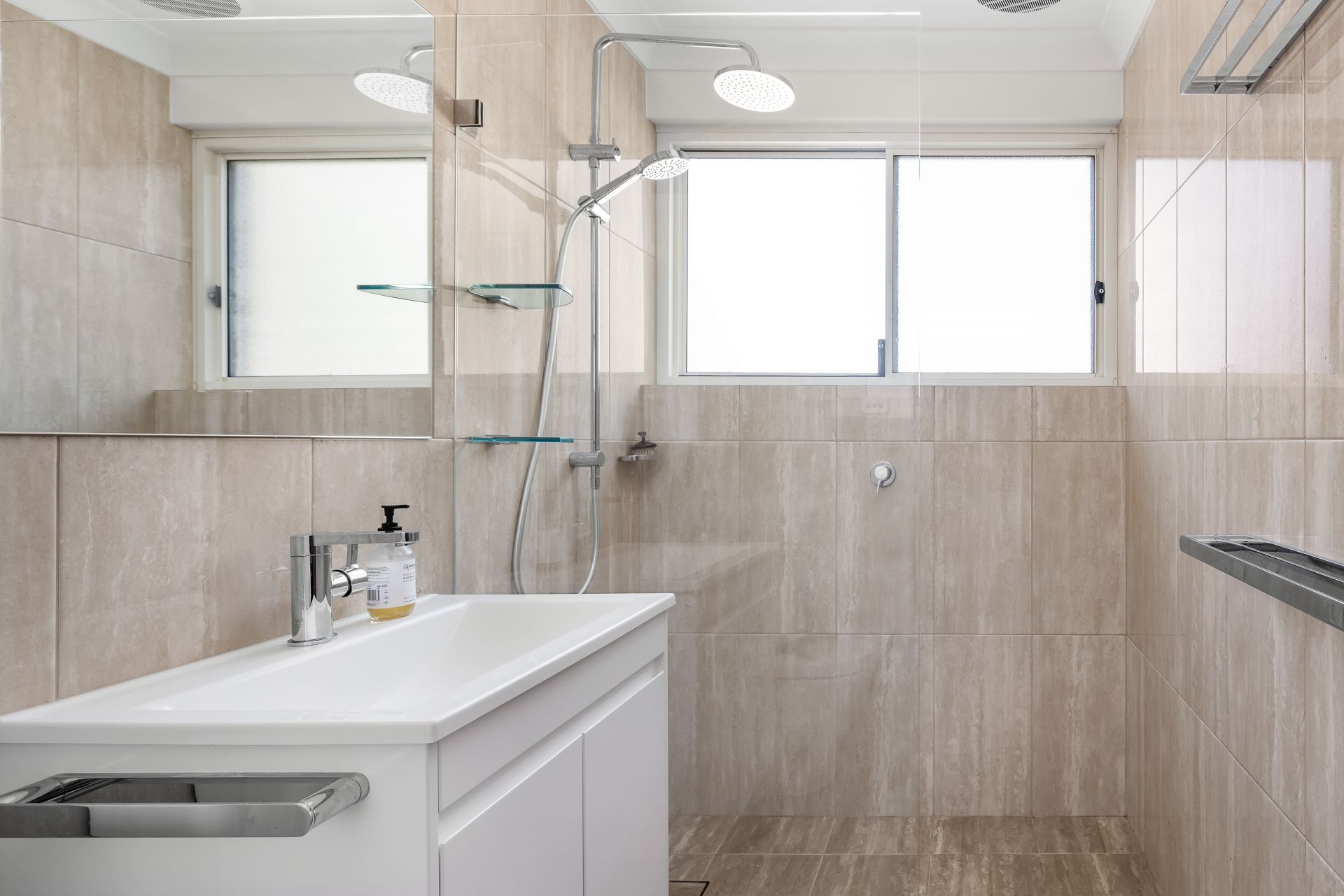 Renovated bathroom w` walk in shower