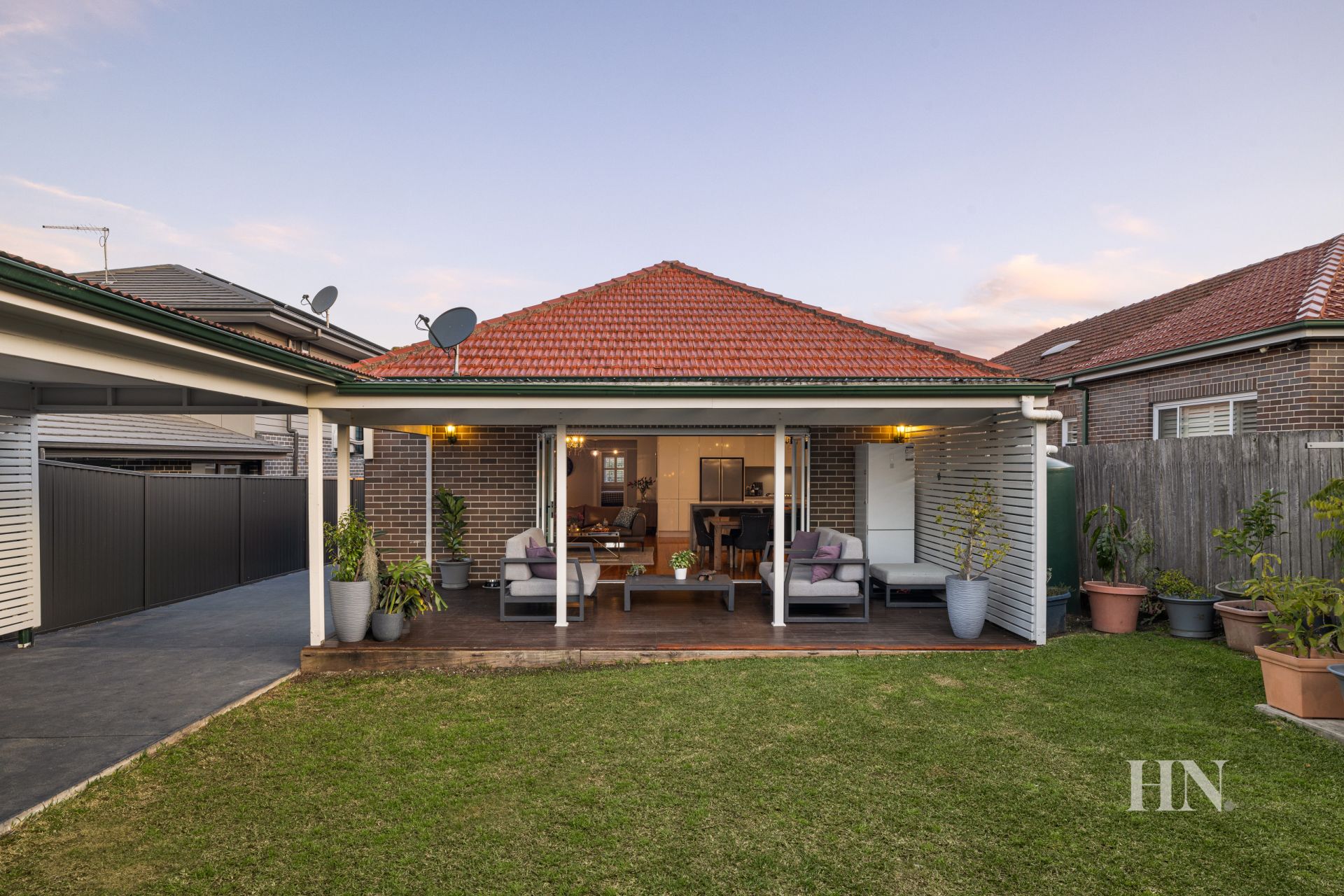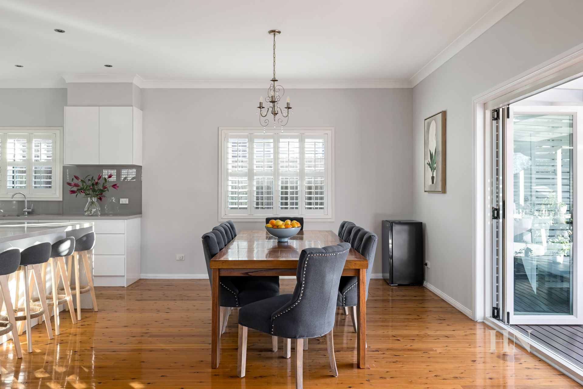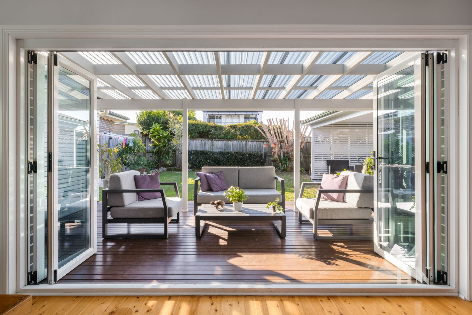 Bi-fold doors open to a North facing sunlit deck