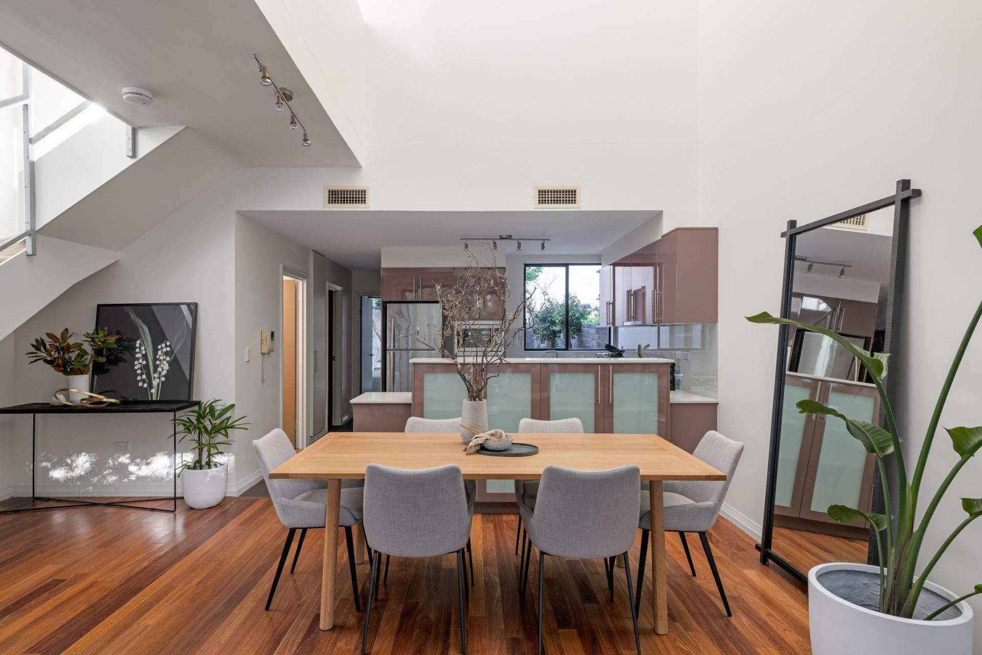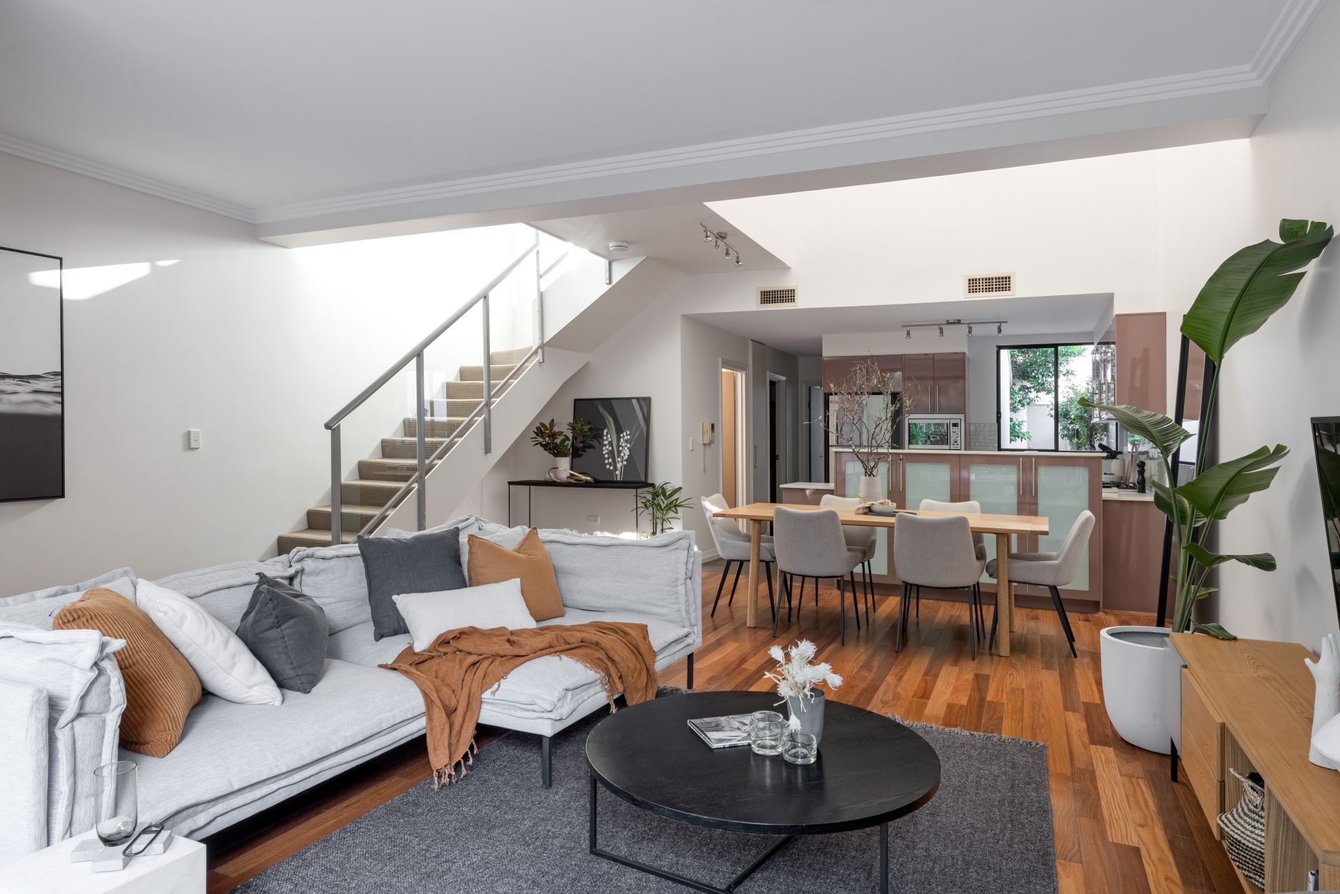 Open plan living spaces and polished floors