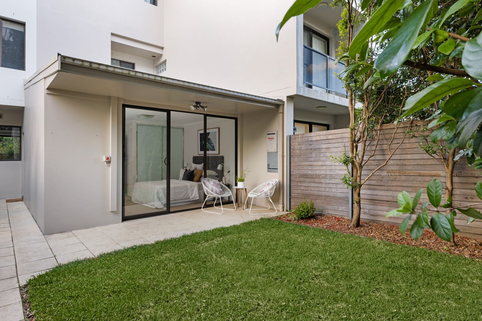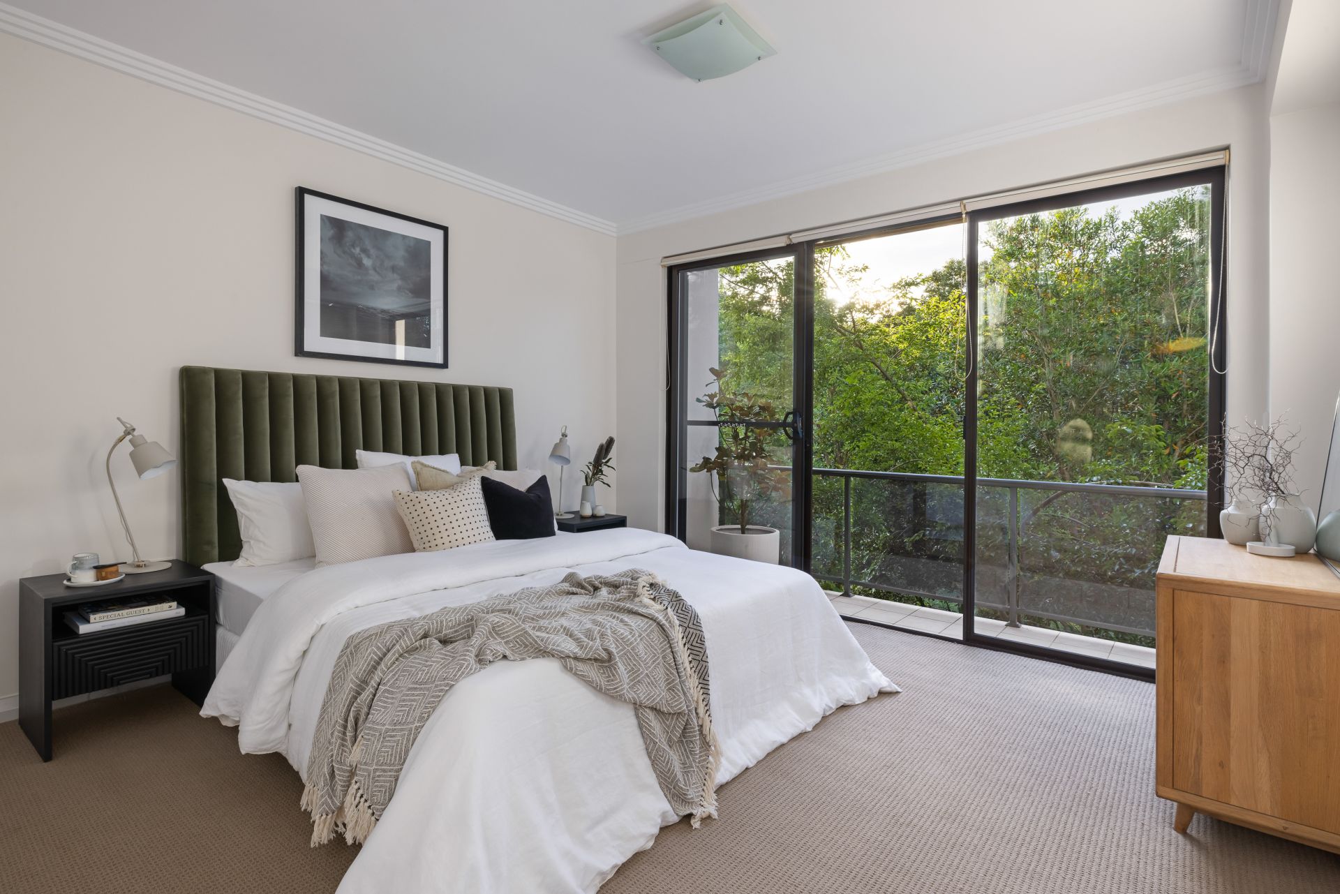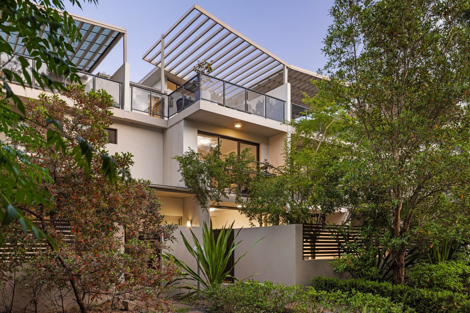 Light filled living areas flow onto front and central gardens/BBQ courtyard ideal for kids play or pets, with an additional rooftop entertainers terrace overlooking Majors Bay through the canopy of peaceful greenery.