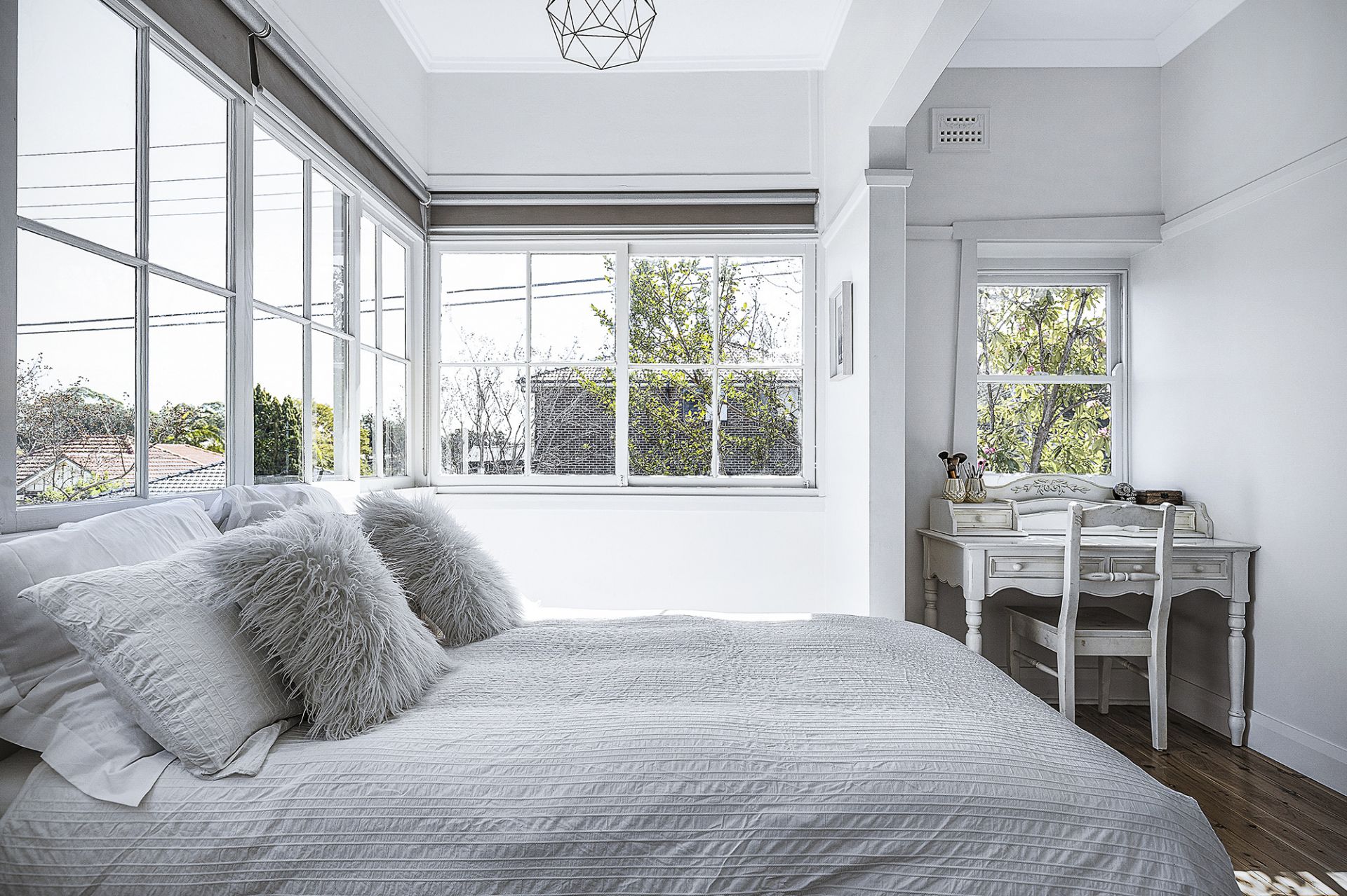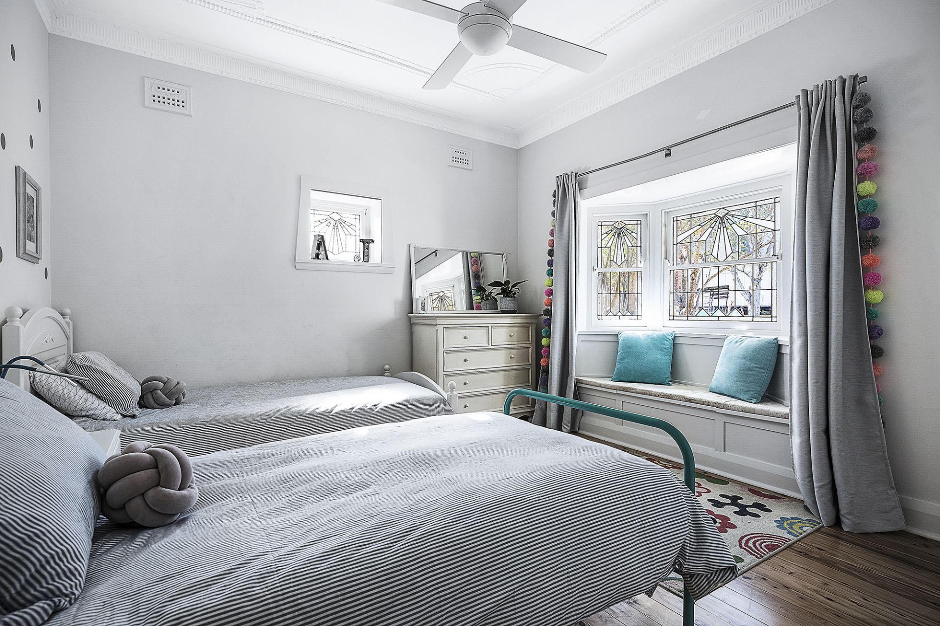 - Four double bedrooms with bay windows, built in robes & ceiling fans