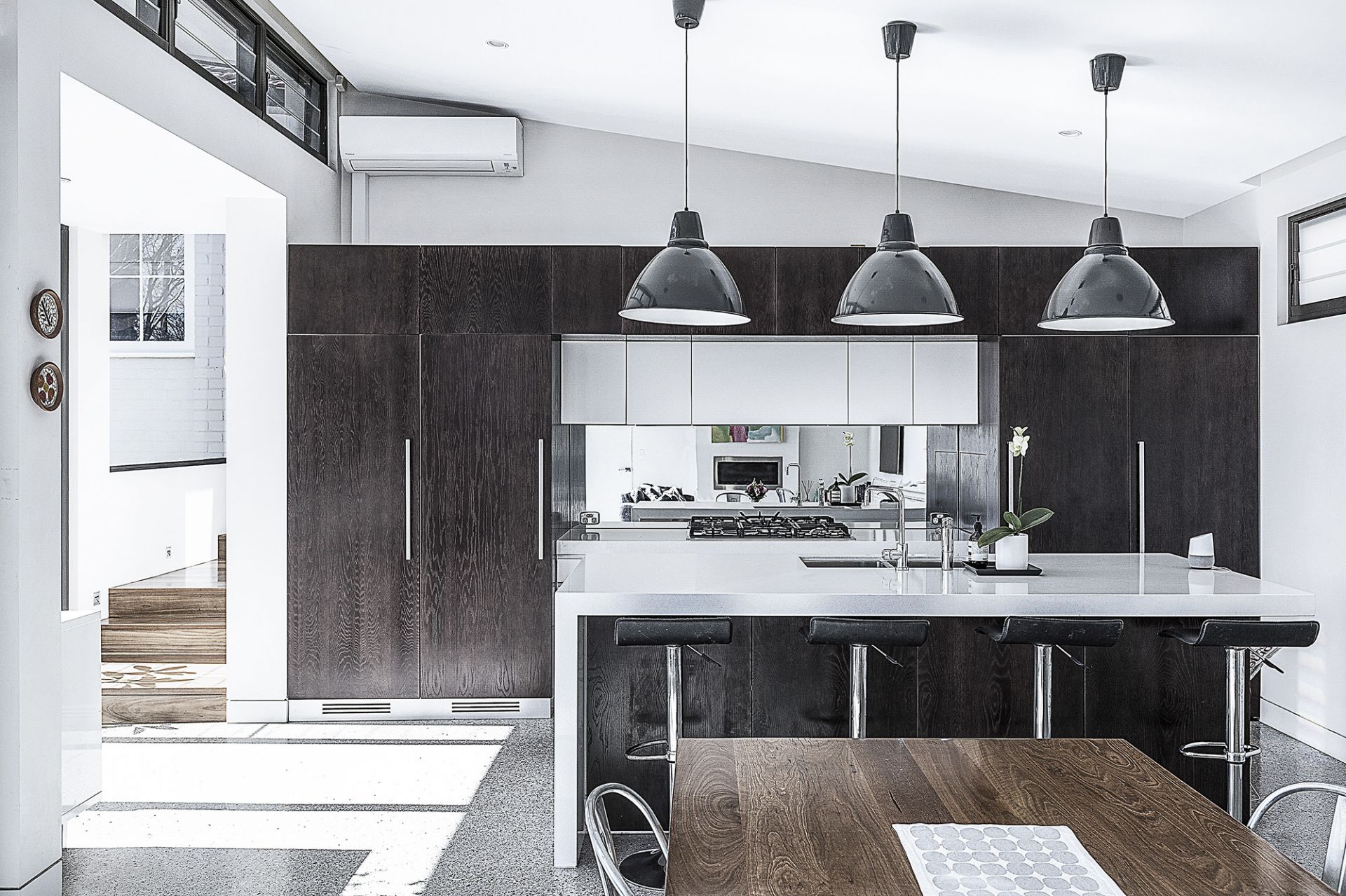 - Huge Caesar stone island bench, integrated fridge and ZIP appliances