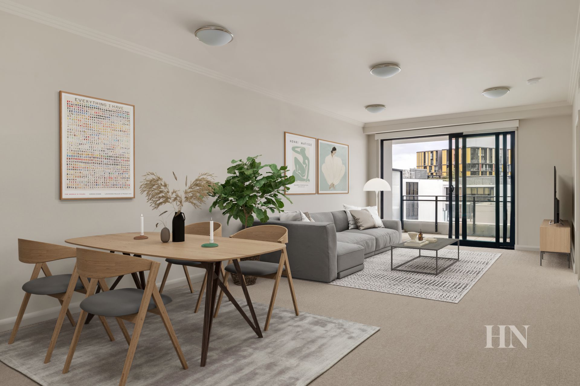 Open plan living/dining flowing to a covered balcony