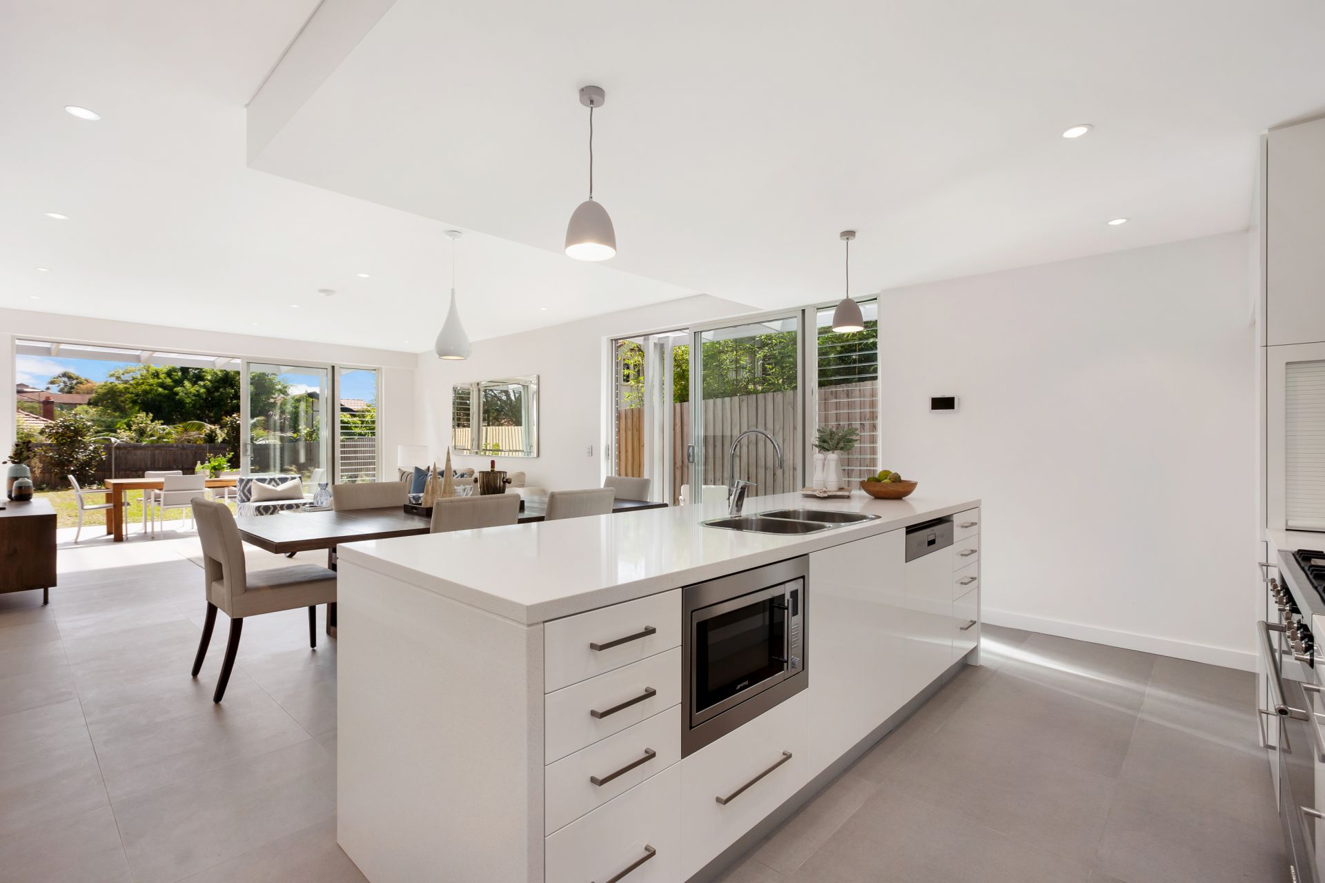 - Double sliding doors blend open plan living & outdoor entertaining
