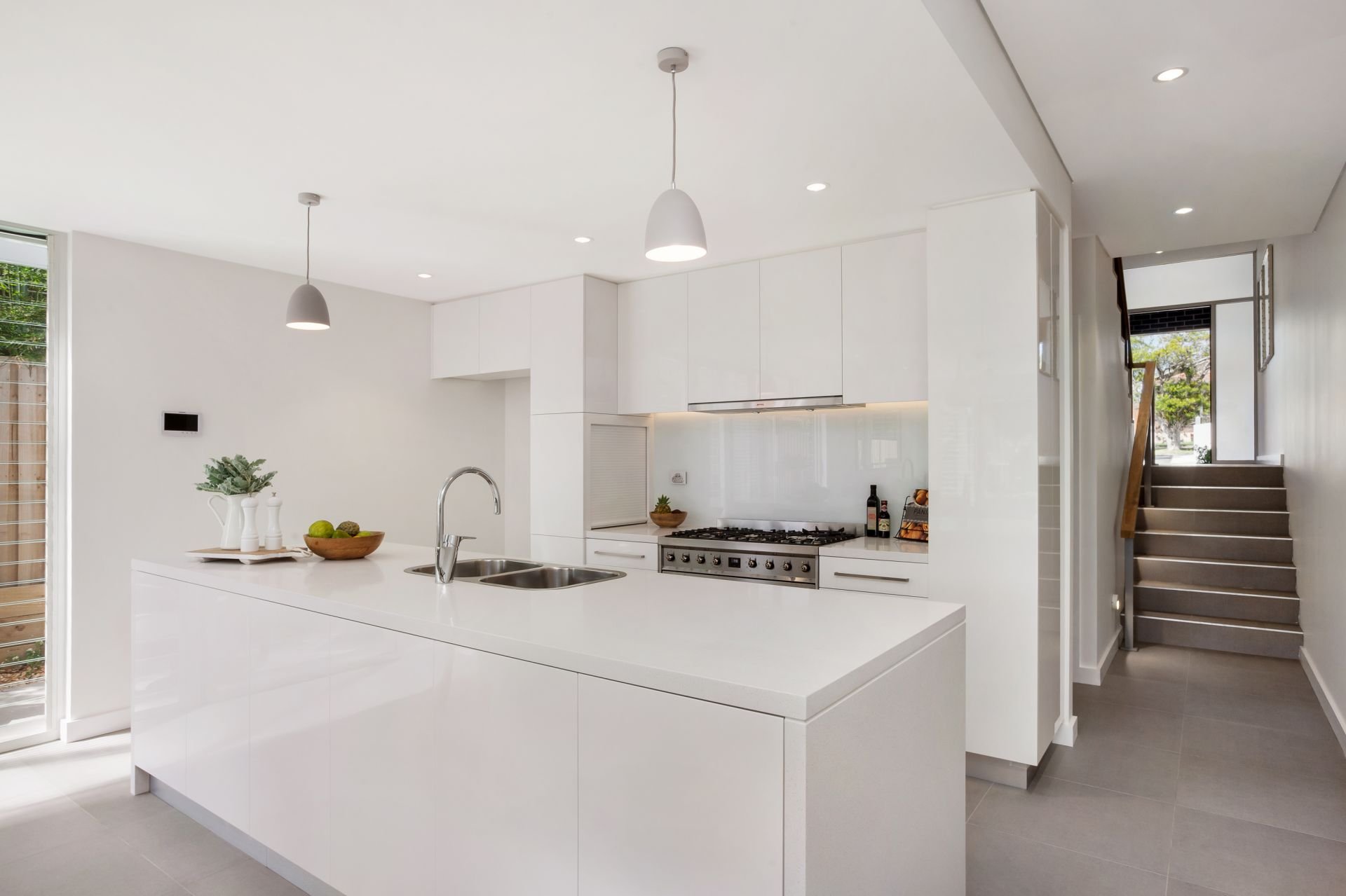 - CaesarStone island kitchen with premium stainless appliances