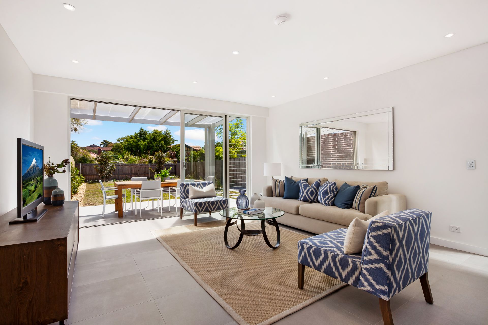 - Double sliding doors blend open plan living & outdoor entertaining