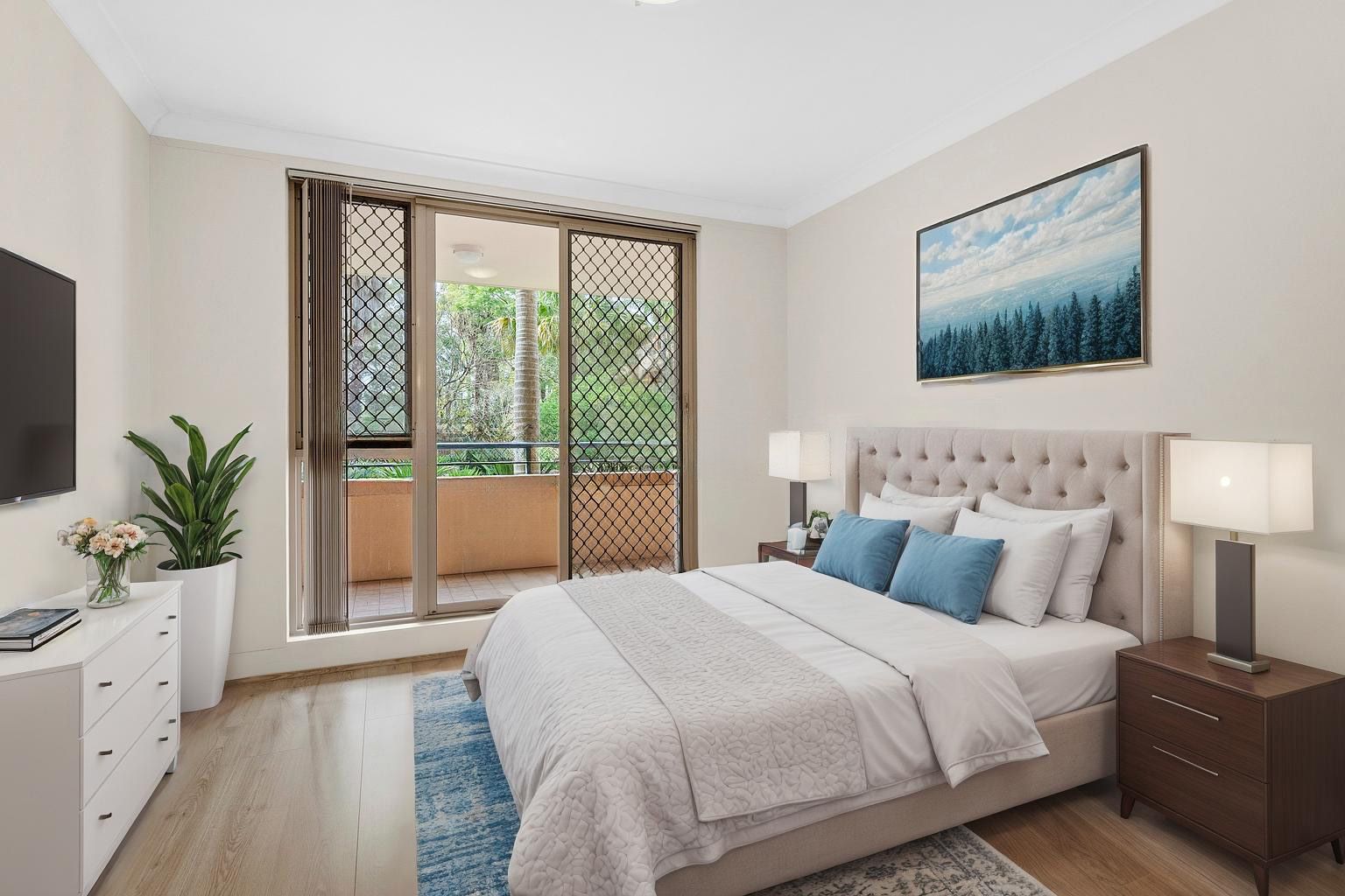 Tucked peacefully within resort-style gardens, this well appointed two-bedroom apartment offers a seamless blend of style, comfort, and convenience. Boasting a spacious north-east facing balcony ideal for alfresco dining and entertaining, the home is designed for low-maintenance living with sun-drenched interiors that flow effortlessly to the outdoors. Generously proportioned throughout, it features a spacious kitchen, modern bathrooms, and inviting bedrooms both with built-in wardrobes. Residents enjoy access to a resort-inspired swimming pool, while the secure first-floor location is just a short stroll from the Bakehouse Quarter's vibrant restaurants, cafes, boutique shops, and North Strathfield Station and Future Metro Station.