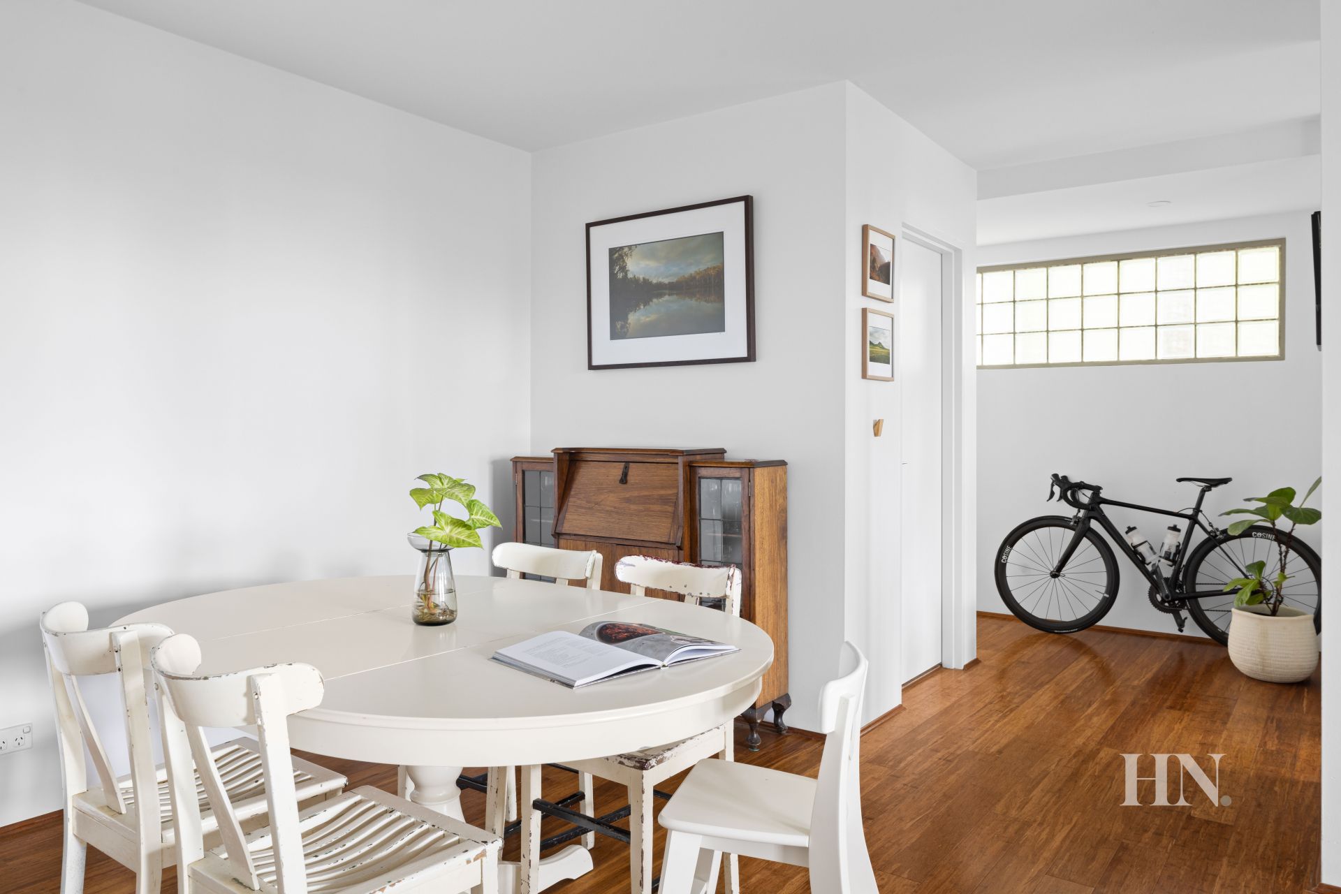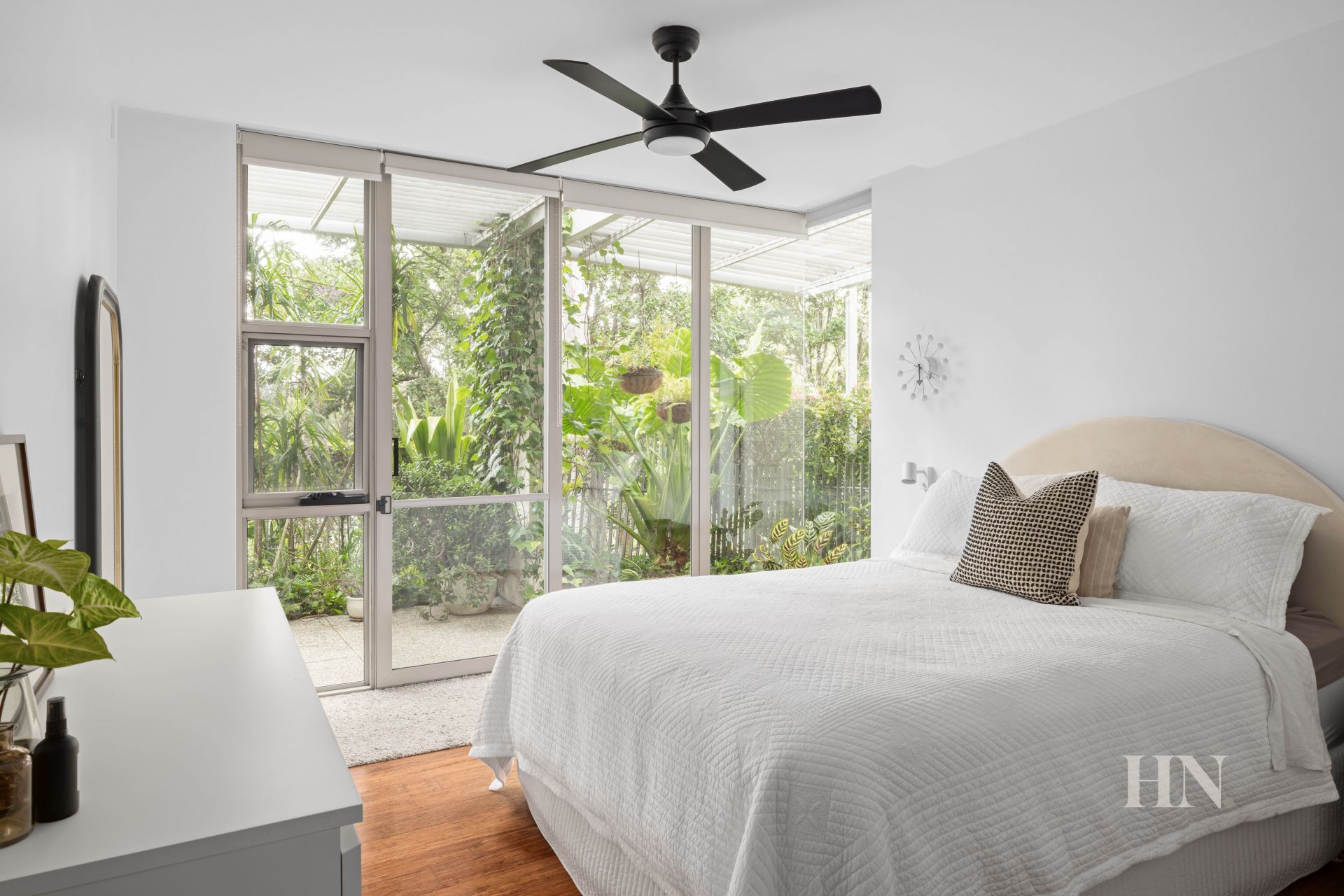 Polished timber floors, floor-to-ceiling glass
