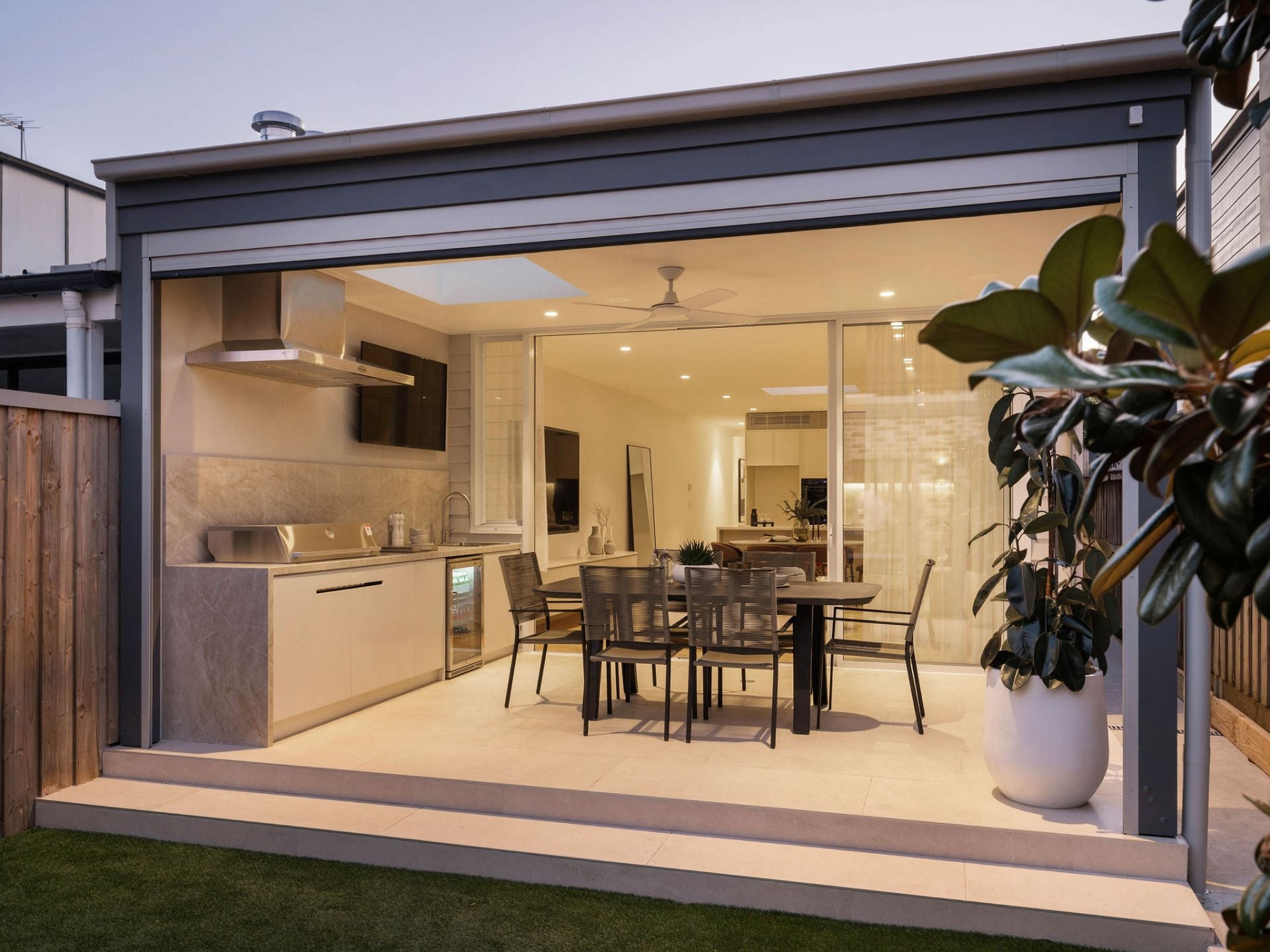 Brand new cement-clad rear extension with concrete slab floor & alfresco