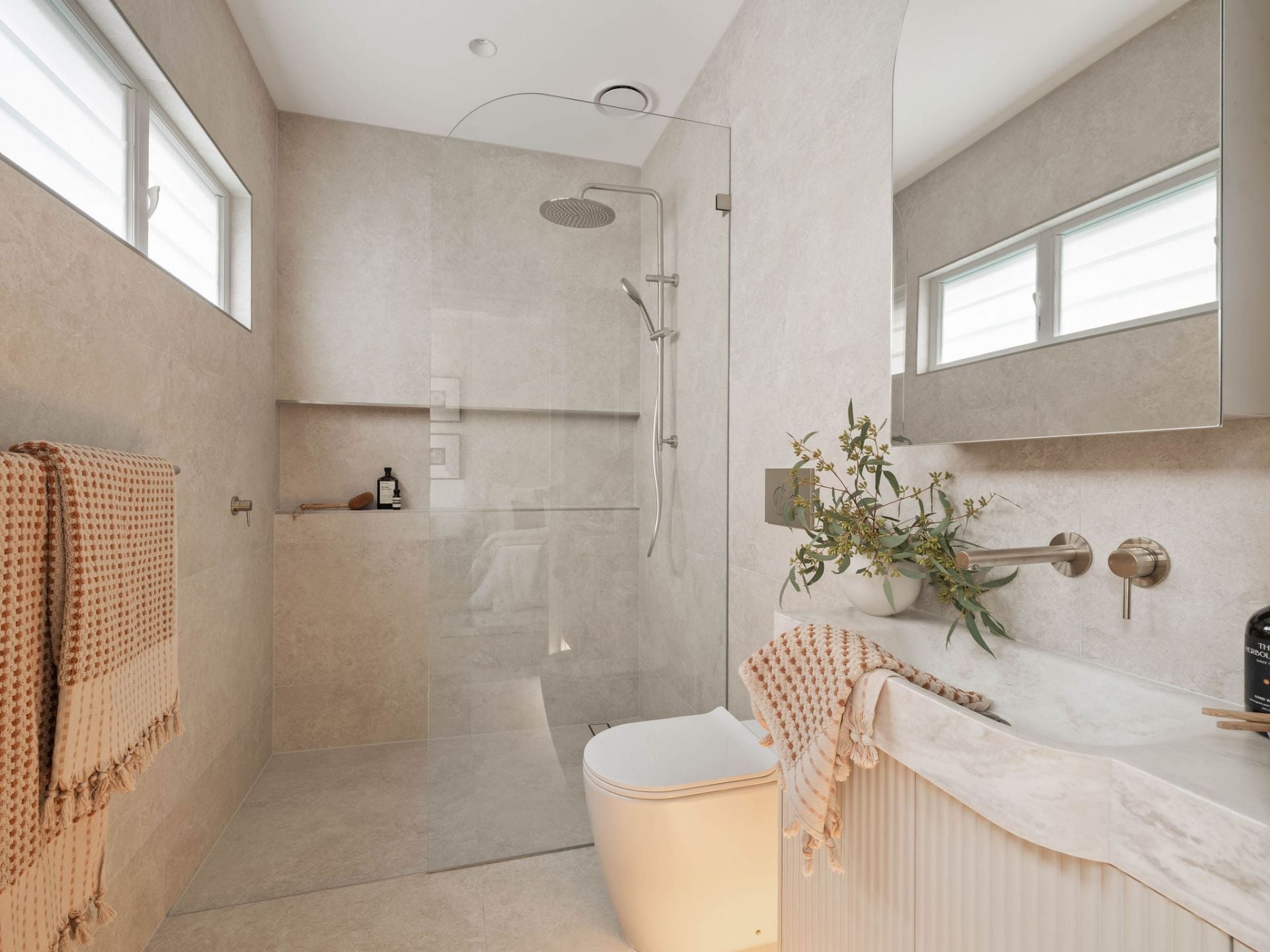 Mizu range Brushed nickel tapware & underfloor heating in both bathrooms