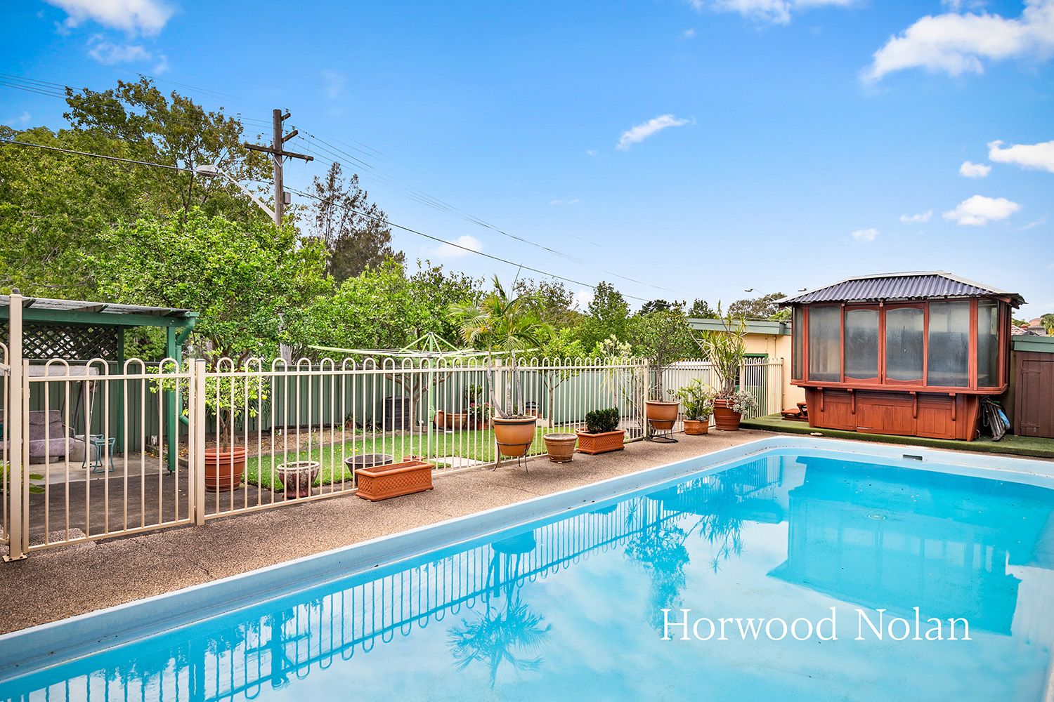 - Private back garden & in ground pool