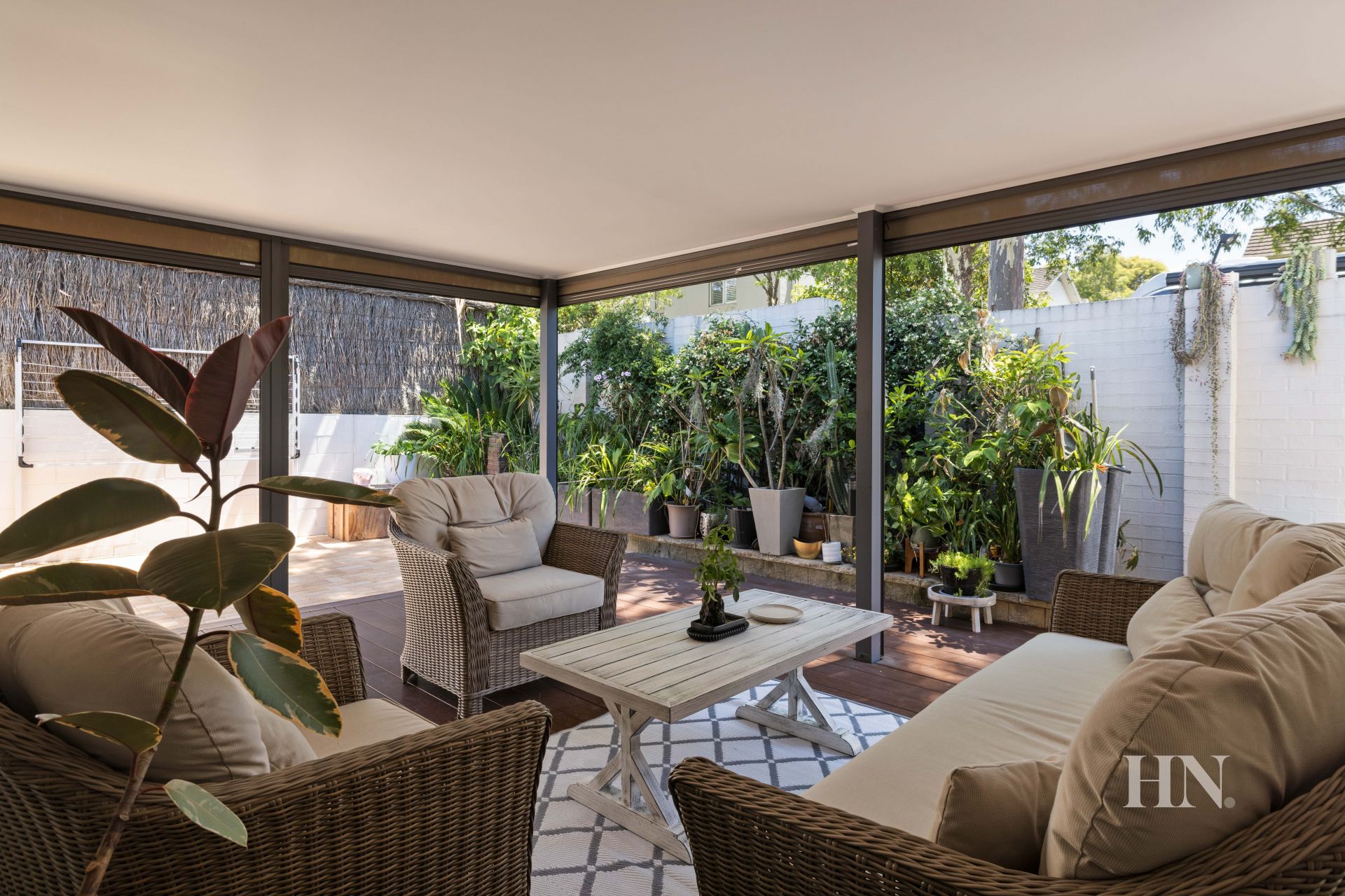 Covered alfresco deck & private sunlit courtyard