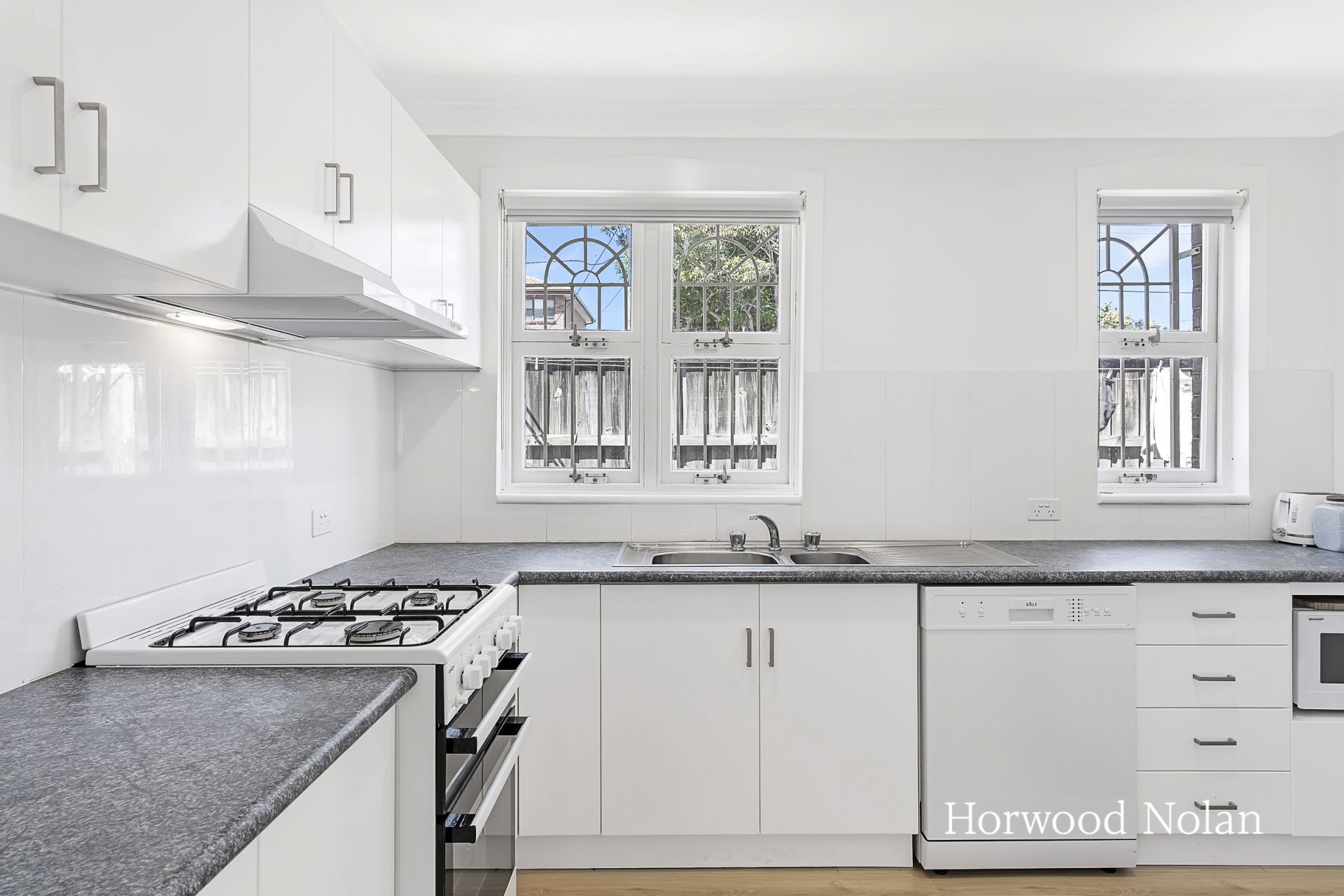 Gas kitchen equipped with dishwasher and ample bench space