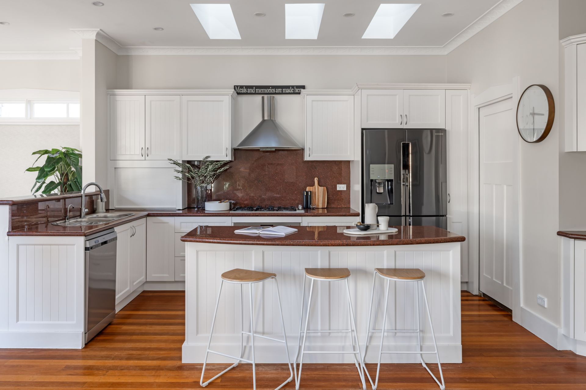 Enviably positioned moments to Massey Park Golf Club and the excellent amenities of Breakfast Point right on the water, this impeccably presented five-bedroom residence combines timeless character and tasteful renovations with a premium location to create the ultimate family lifestyle. Underpinned by an original 1920s Californian bungalow, the home spans two spacious light filled levels capturing views towards the bay and city skyline, complemented by an inviting alfresco environment including swimming pool. The home also features a lengthy side driveway through to a double storey garage at the rear providing tandem parking and multipurpose space above. A short walk from Cabarita Wharf and within 15mins of Mortlake Public School, the home is also easily accessible to foreshore parklands, village shops, cafes and buses bound for the ferry and Burwood station.