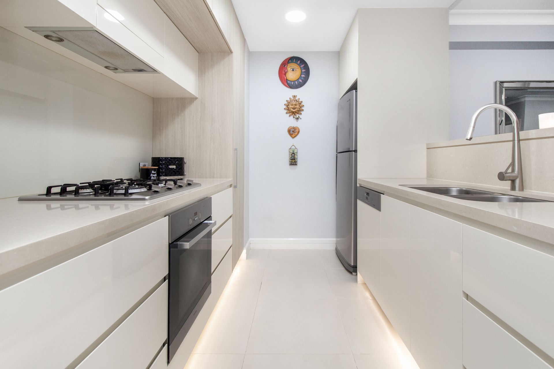 Contemporary, light filled interiors flow to balcony
