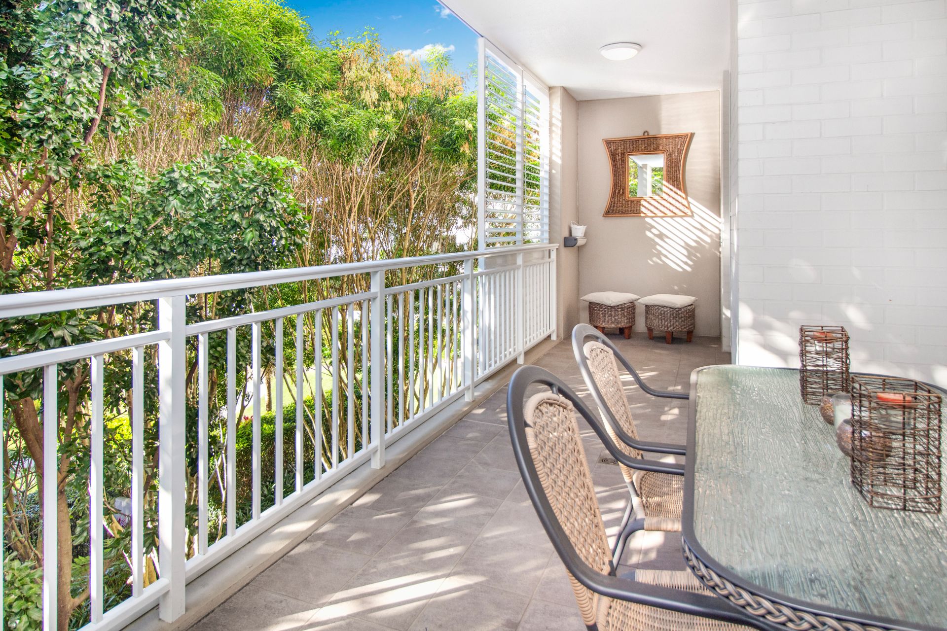 Private, sun filled balcony perfect for entertaining