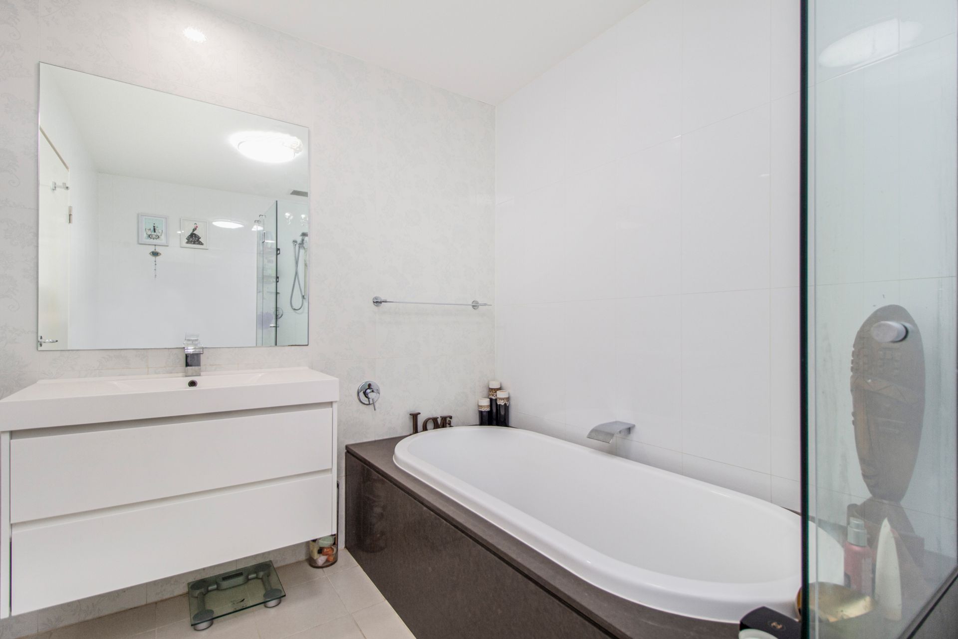 Large internal laundry with ample storage cabinet
