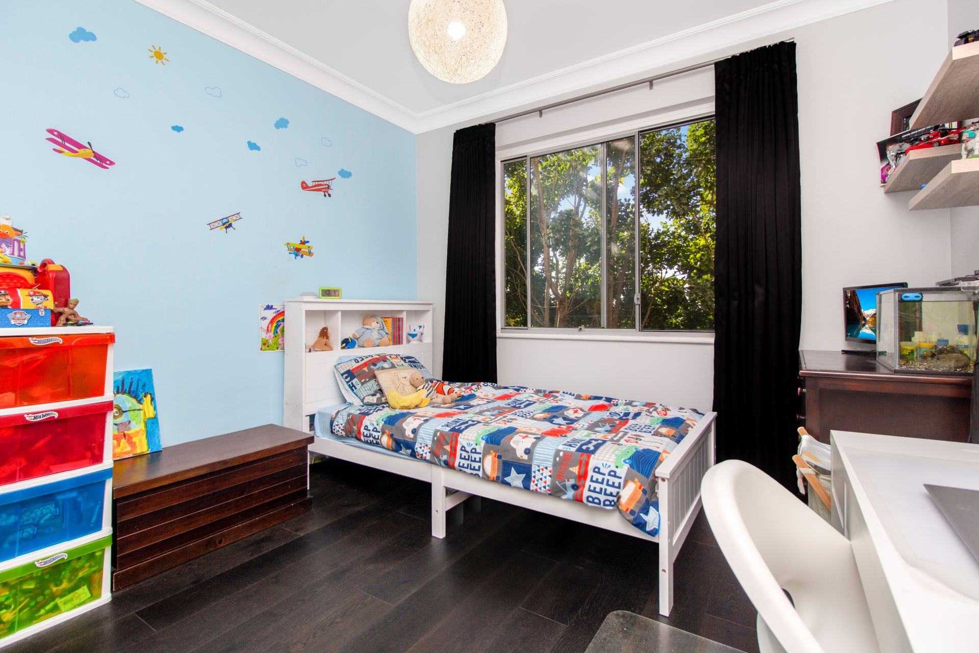 Custom built in cabinetry, timber floors throughout