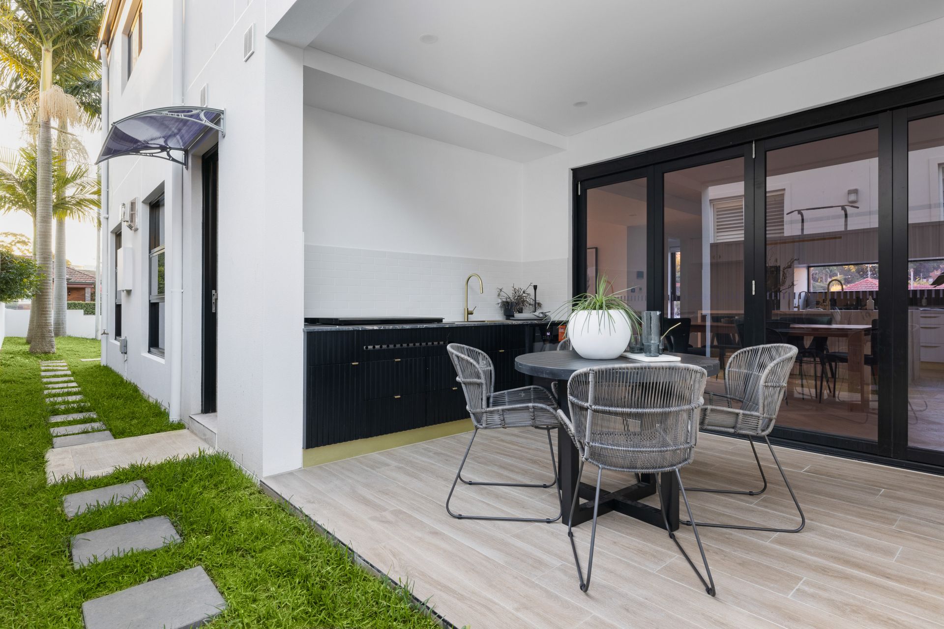 Covered outdoor dining built in BBQ and fridge