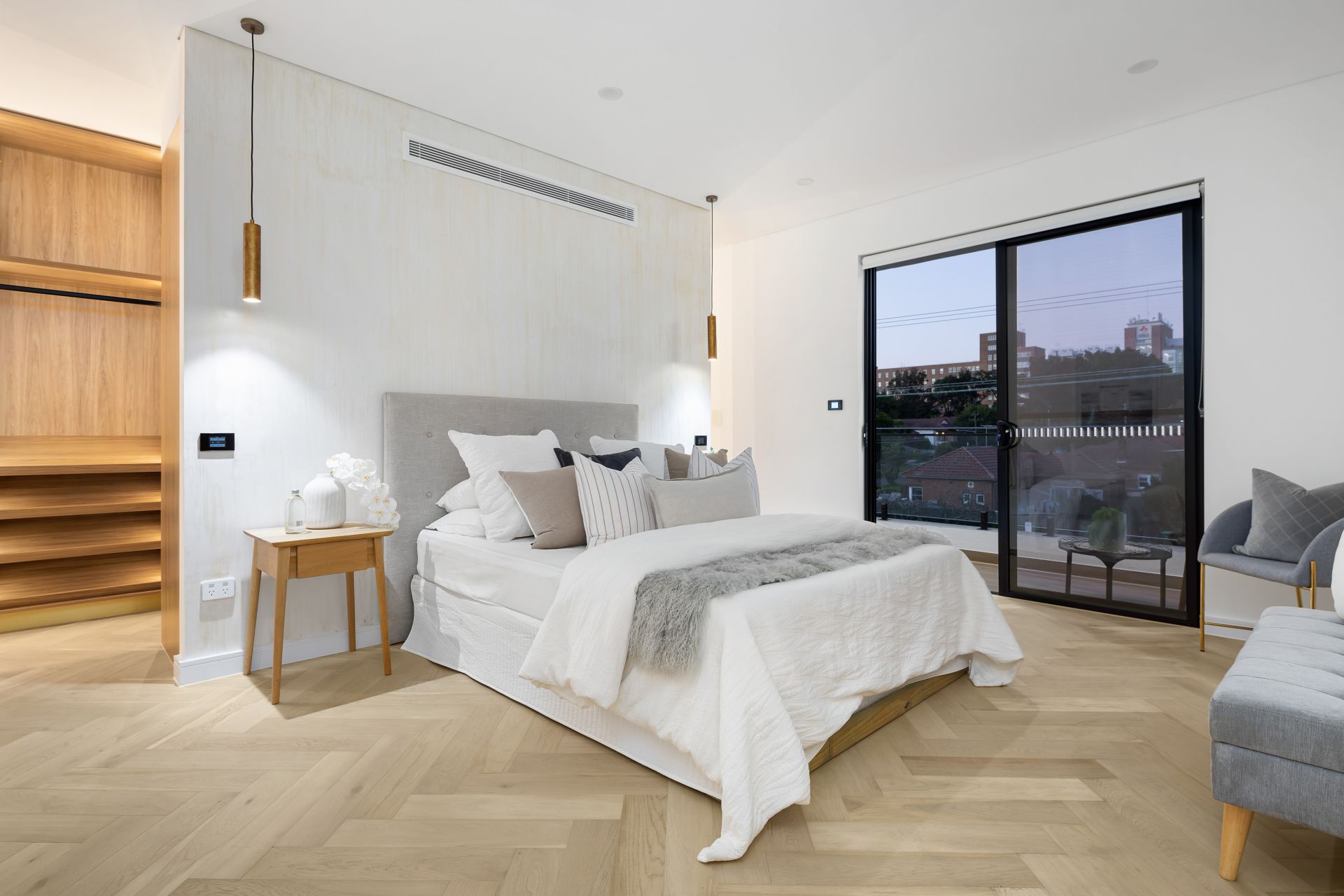 Main bedroom w custom joinery walk in & ensuite