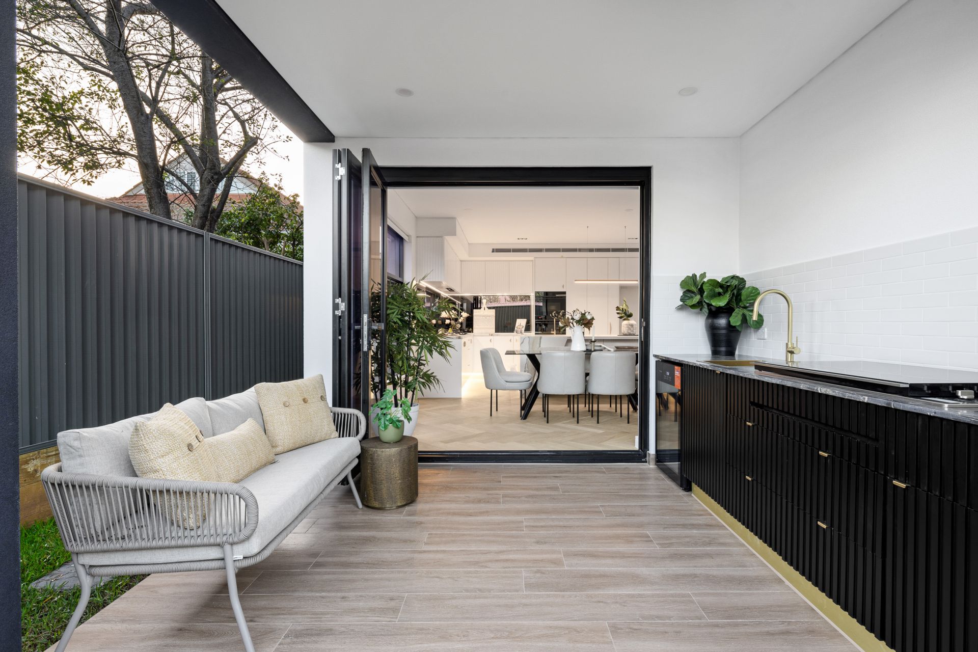 Covered outdoor dining built in BBQ and fridge
