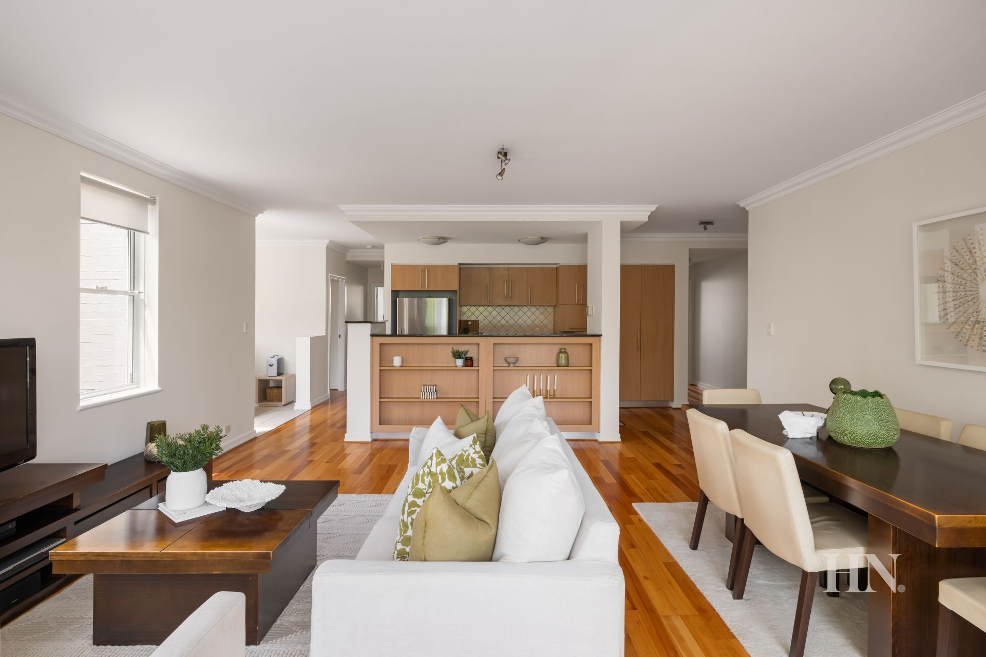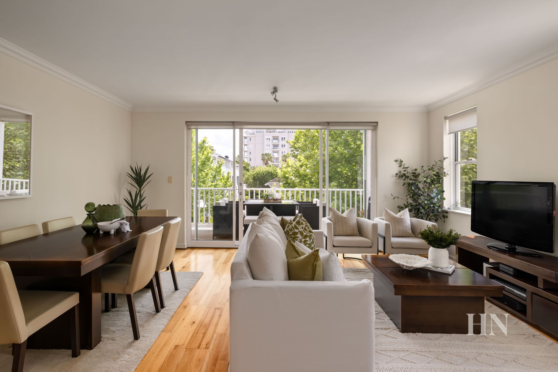 Spacious living-dining bathed in natural light