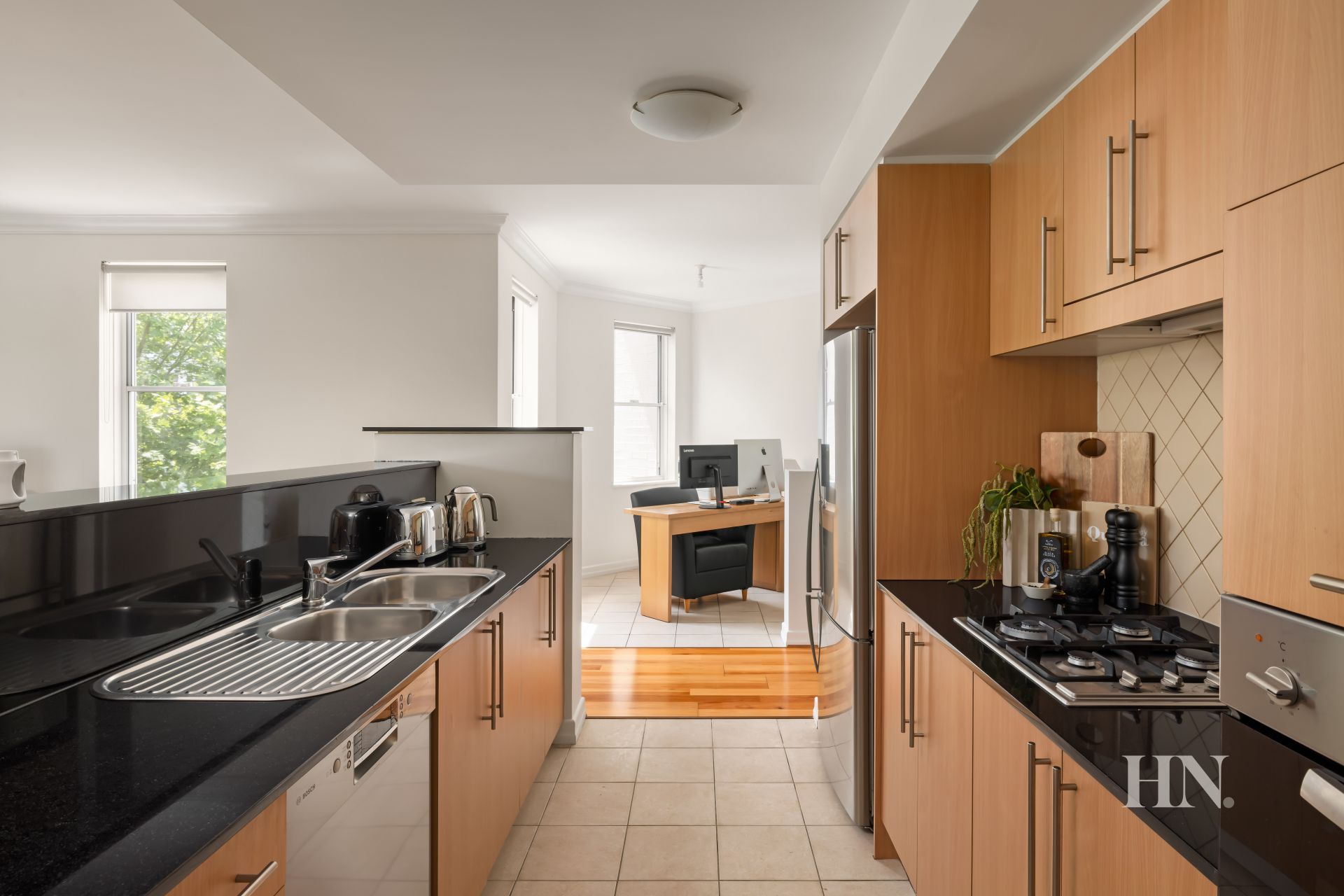 Open kitchen featuring s/steel appliances, gas