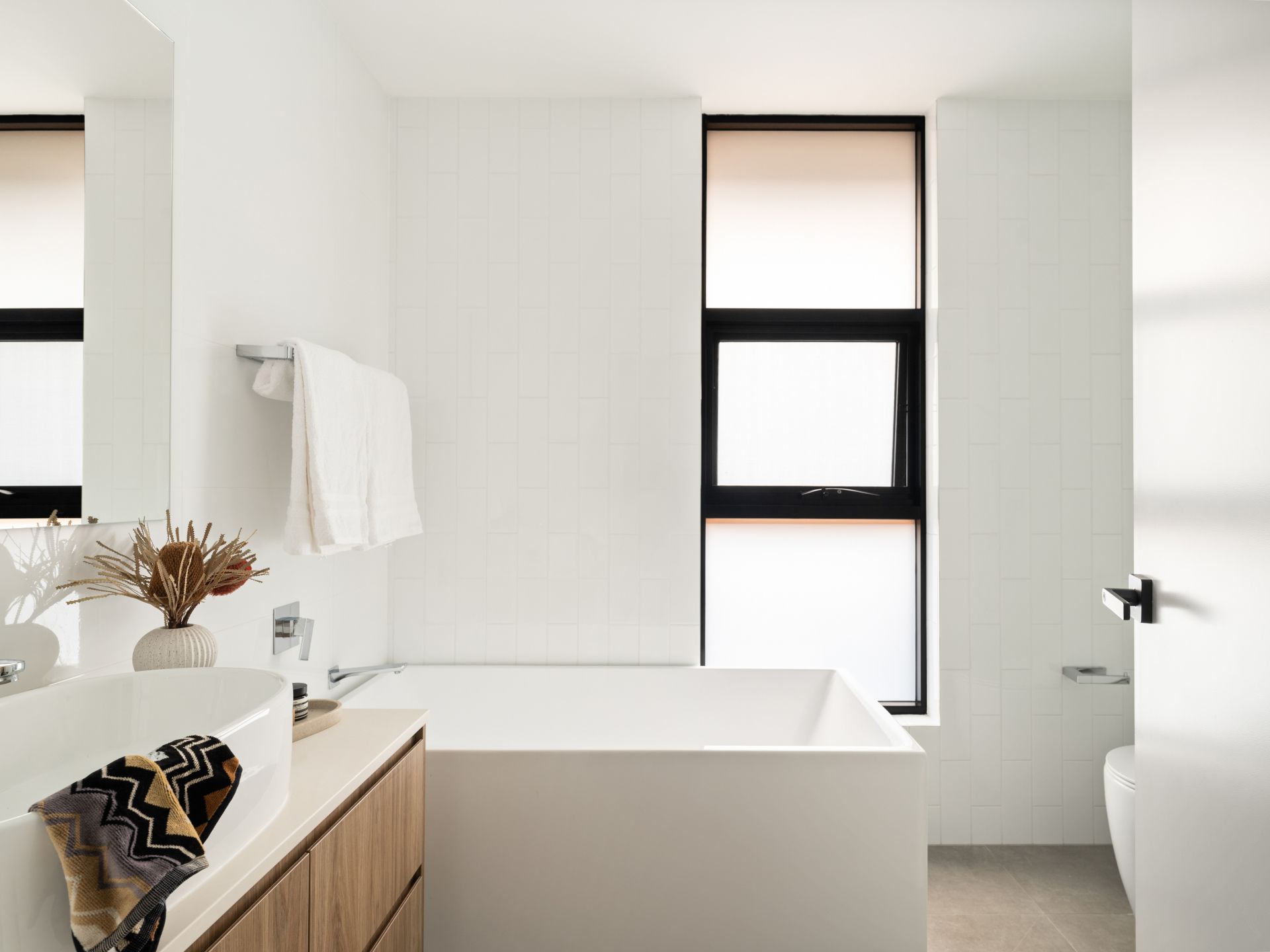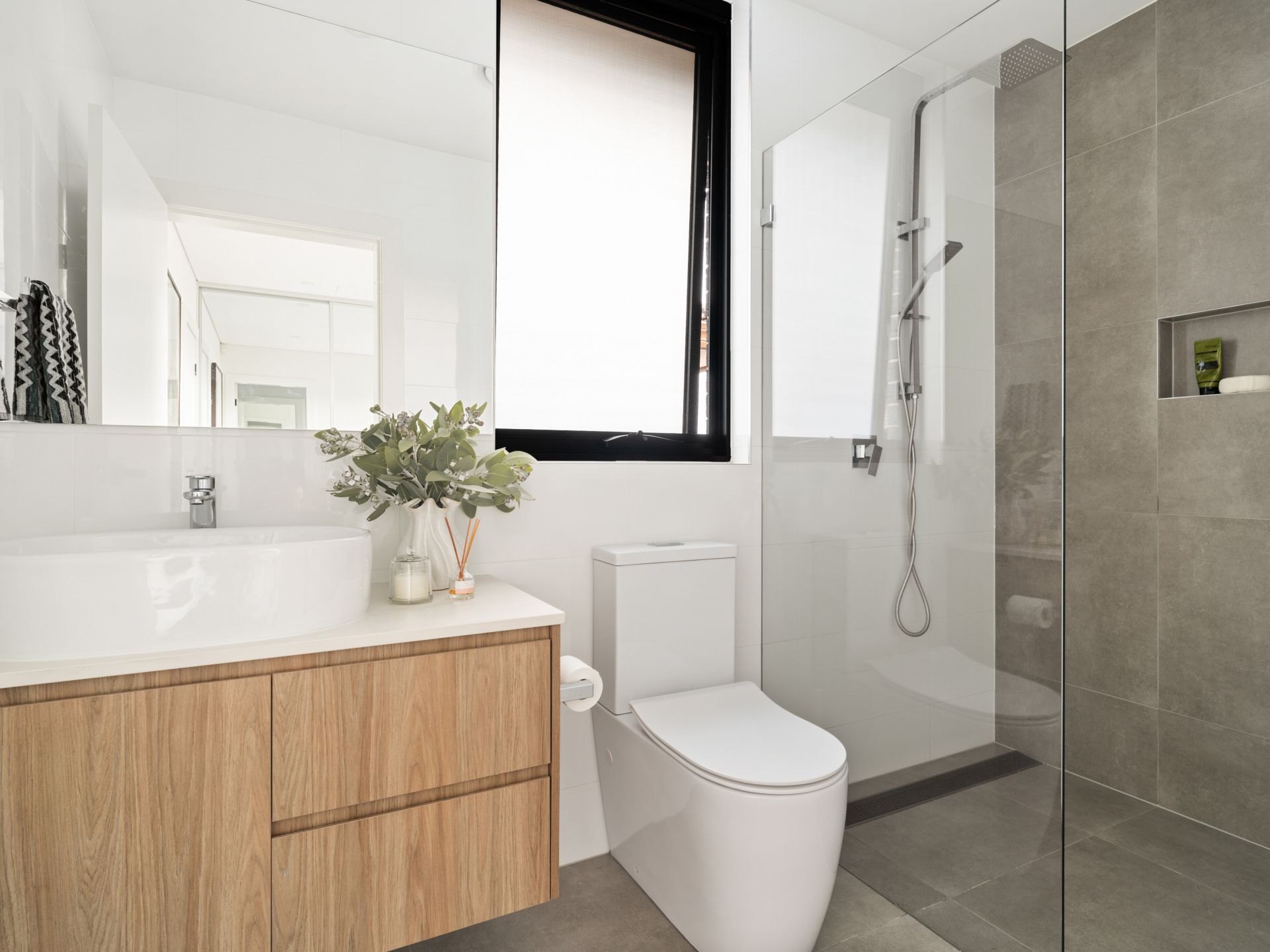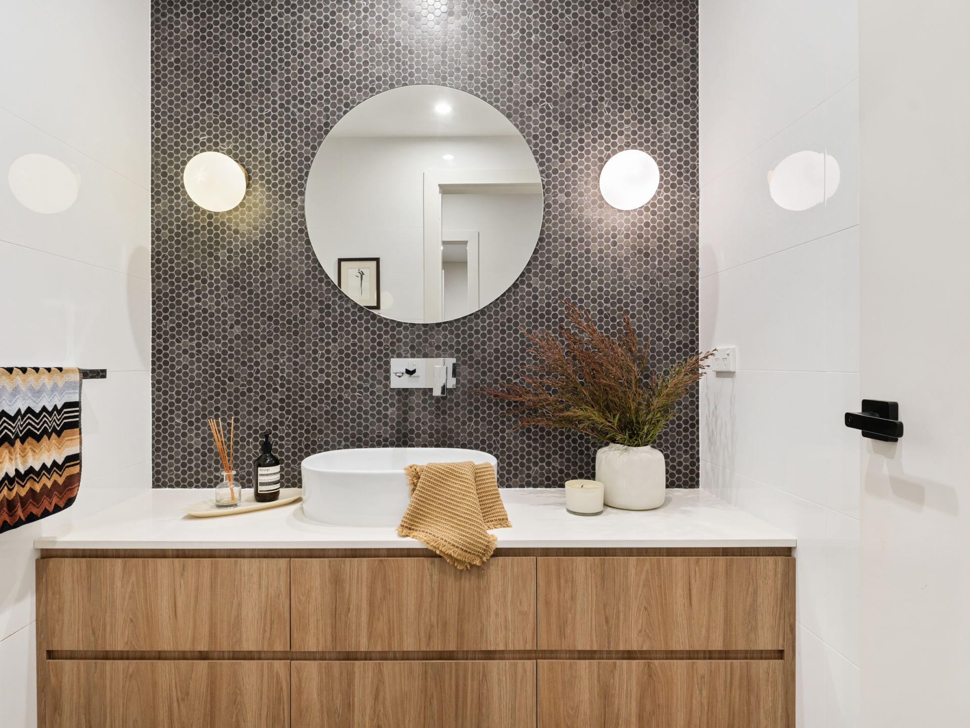 Designer vanities with stone benchtops and custom joinery