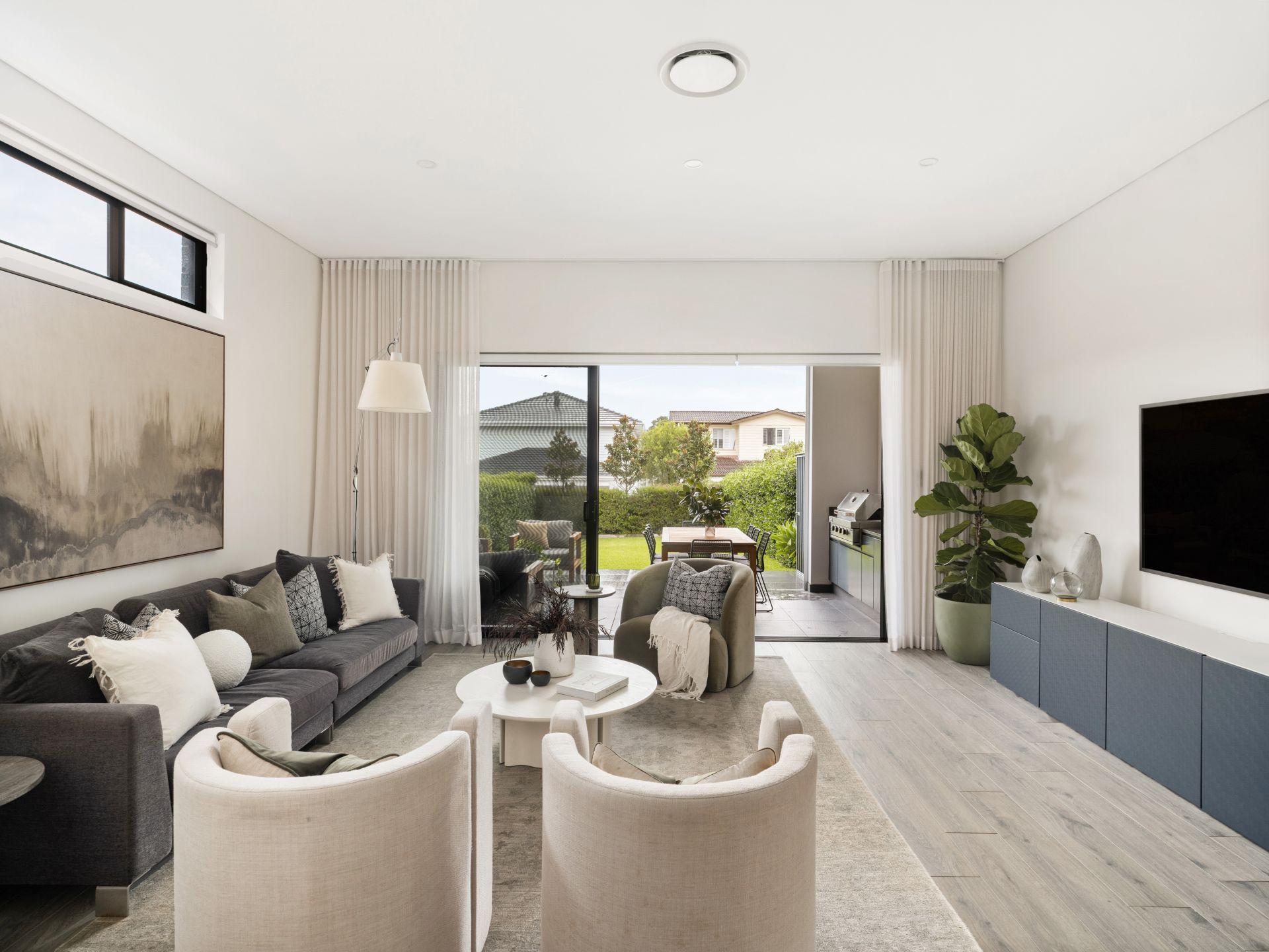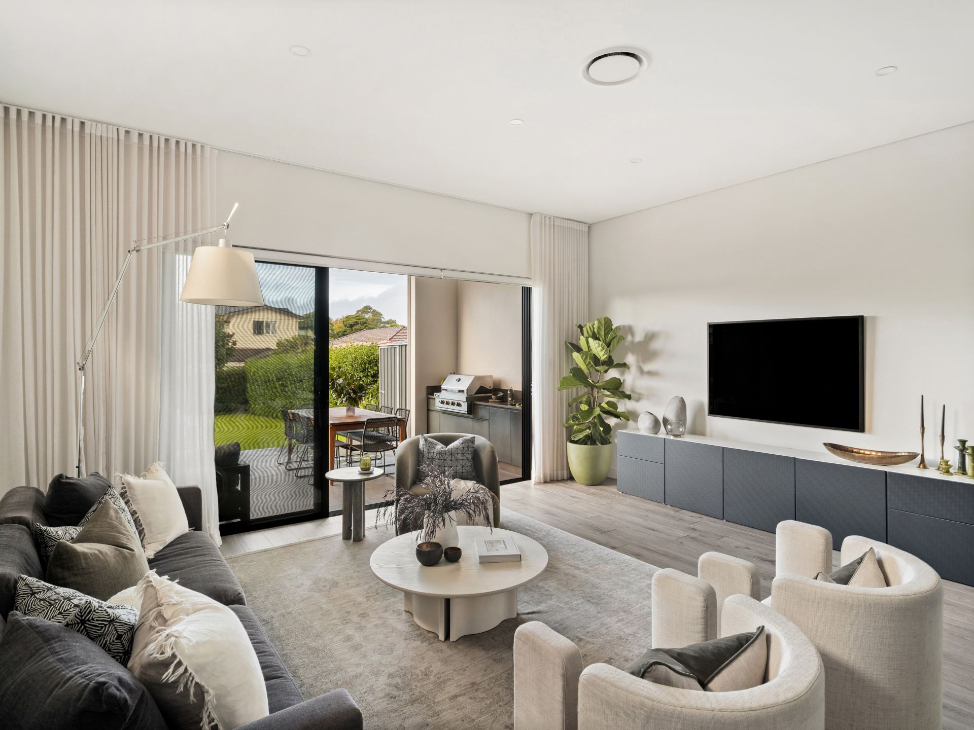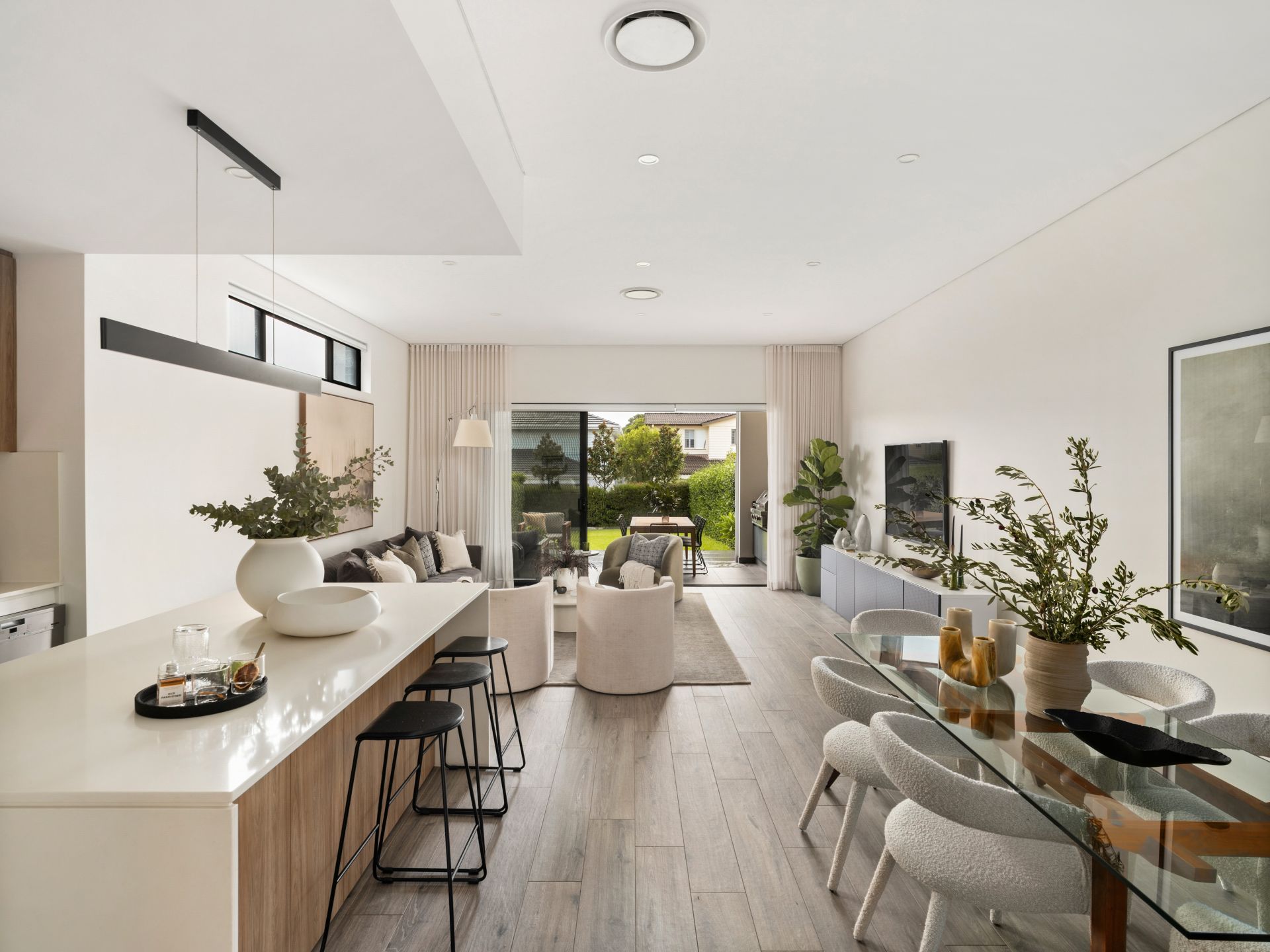 Big open-plan living with stacker doors to a private alfresco
