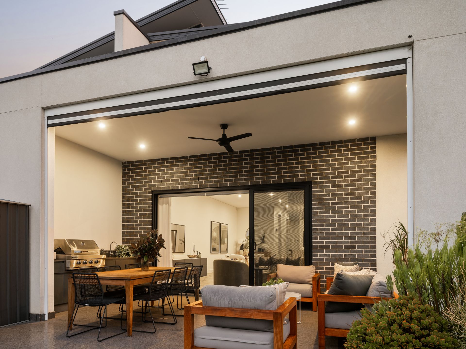 Covered alfresco entertaining with integrated gas BBQ