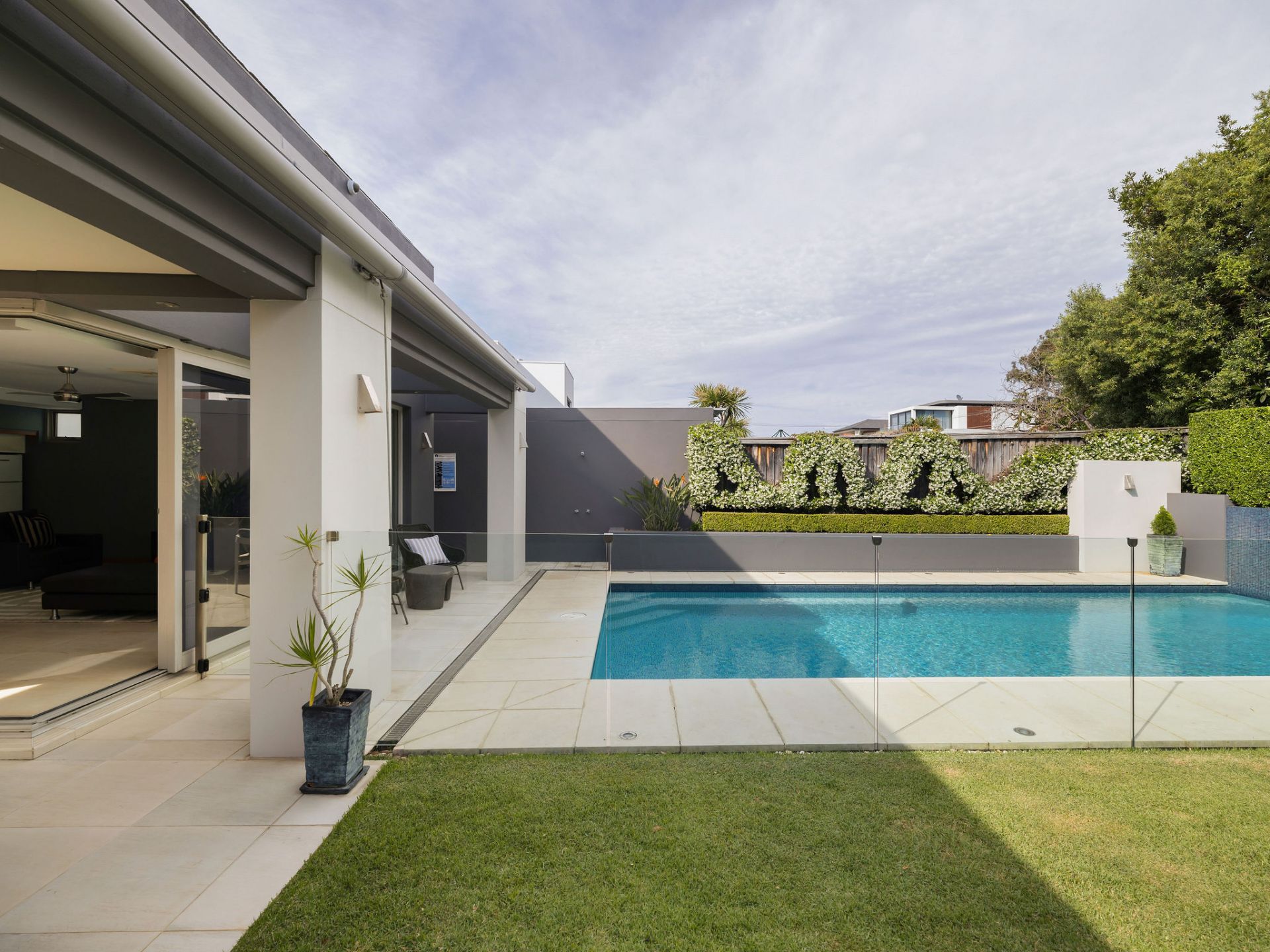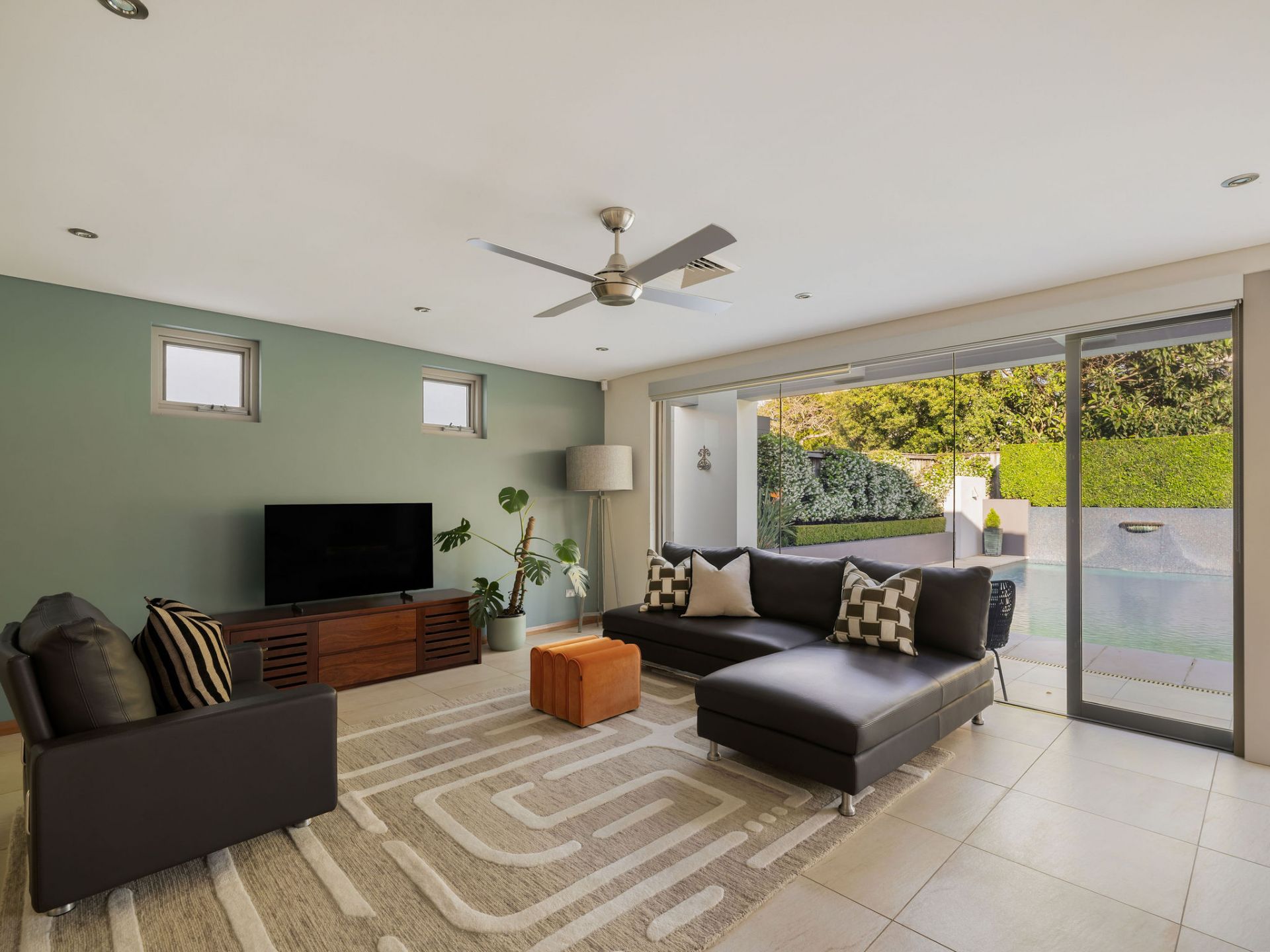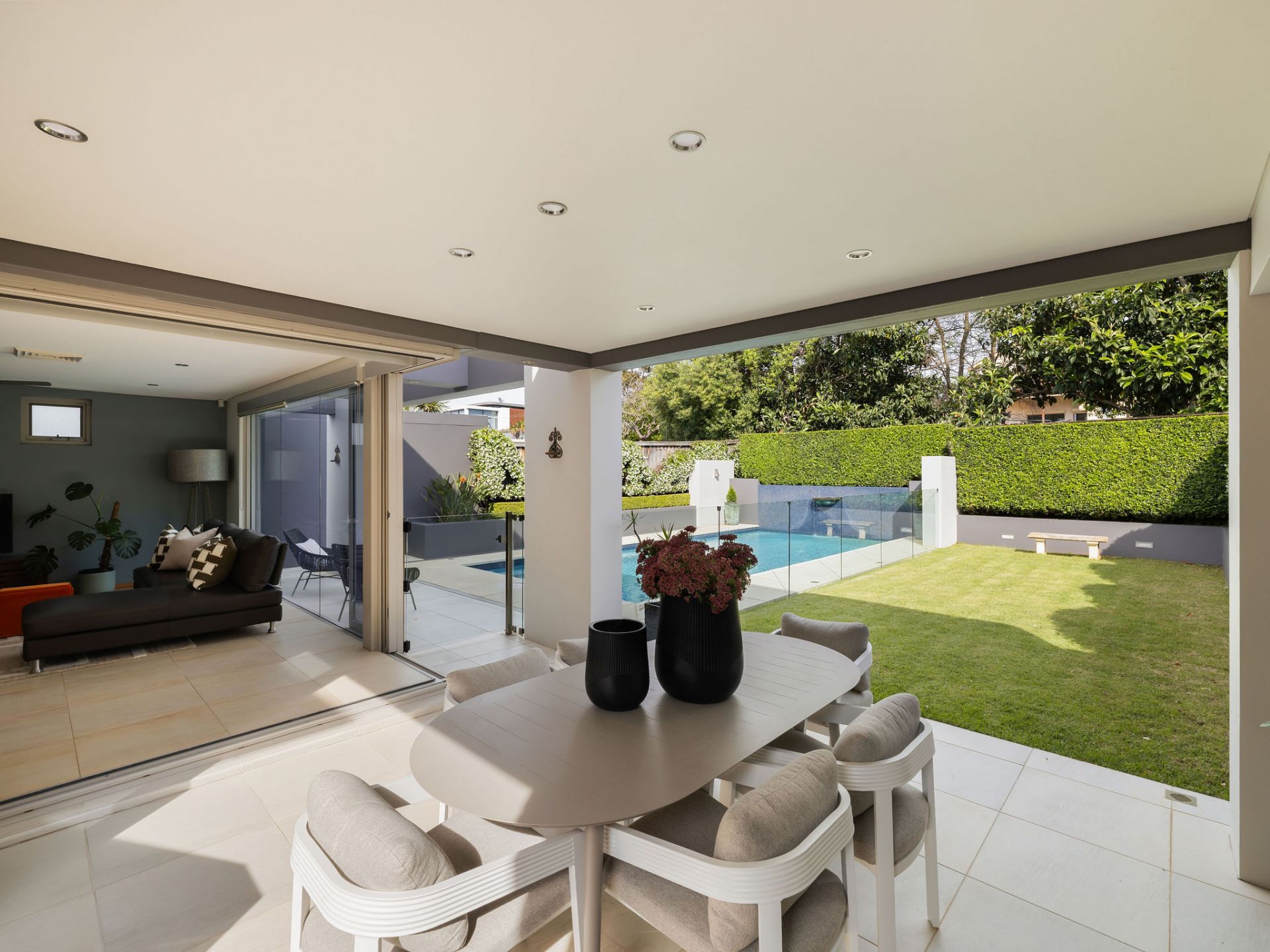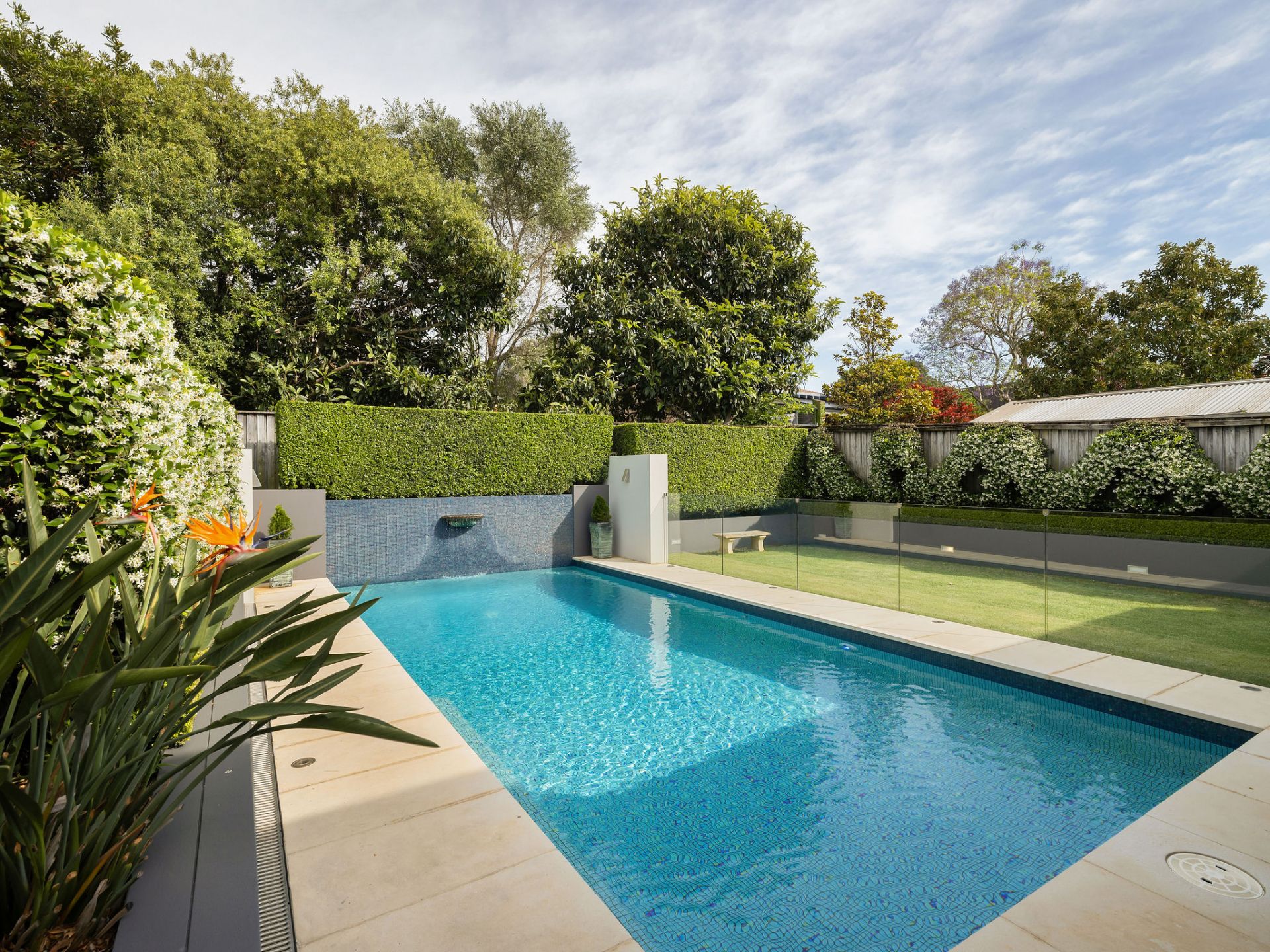Entertain amongst mature manicured gardens with Mediterranean-inspired surrounds with a self-contained kitchenette including dishwasher and drinks fridge, flowing to a covered BBQ terrace with awnings and sunshade blinds. The solar-heated, ionised pool is tiled in Bisazza mosaics, complemented by an outdoor hot and cold shower and a private terrace reminiscent of a romantic Tuscan estate.