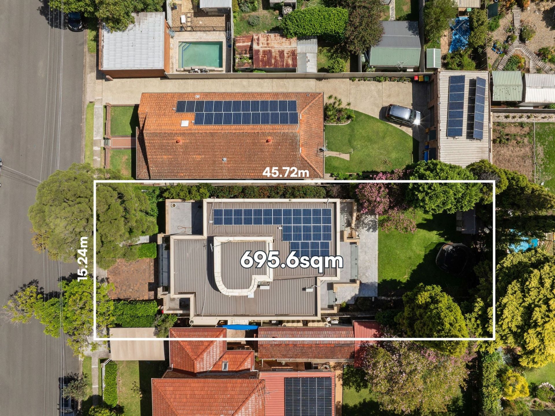 The home sits on a wide 15.24-metre frontage and an expansive 695.6sqm parcel of land - significantly larger than the suburb average - with a prized north-east to rear aspect that fills the home and garden with natural light throughout the day. The elevated position further enhances privacy, outlook and long-term desirability.