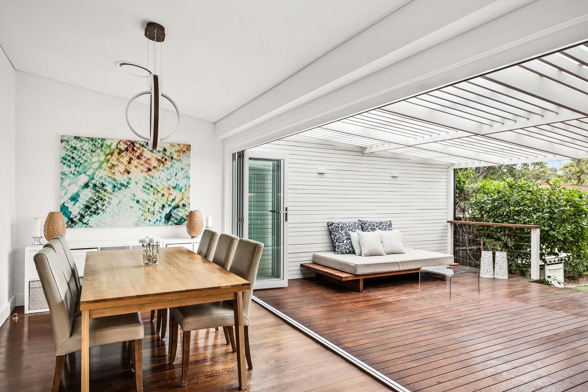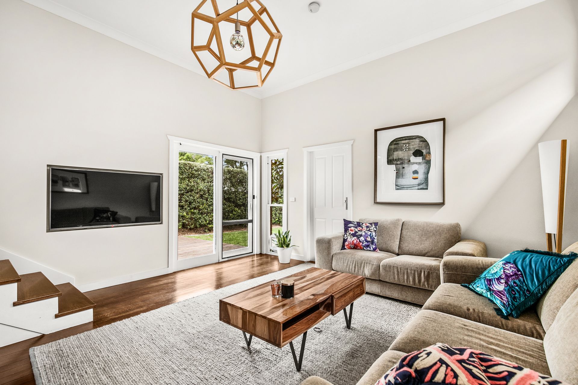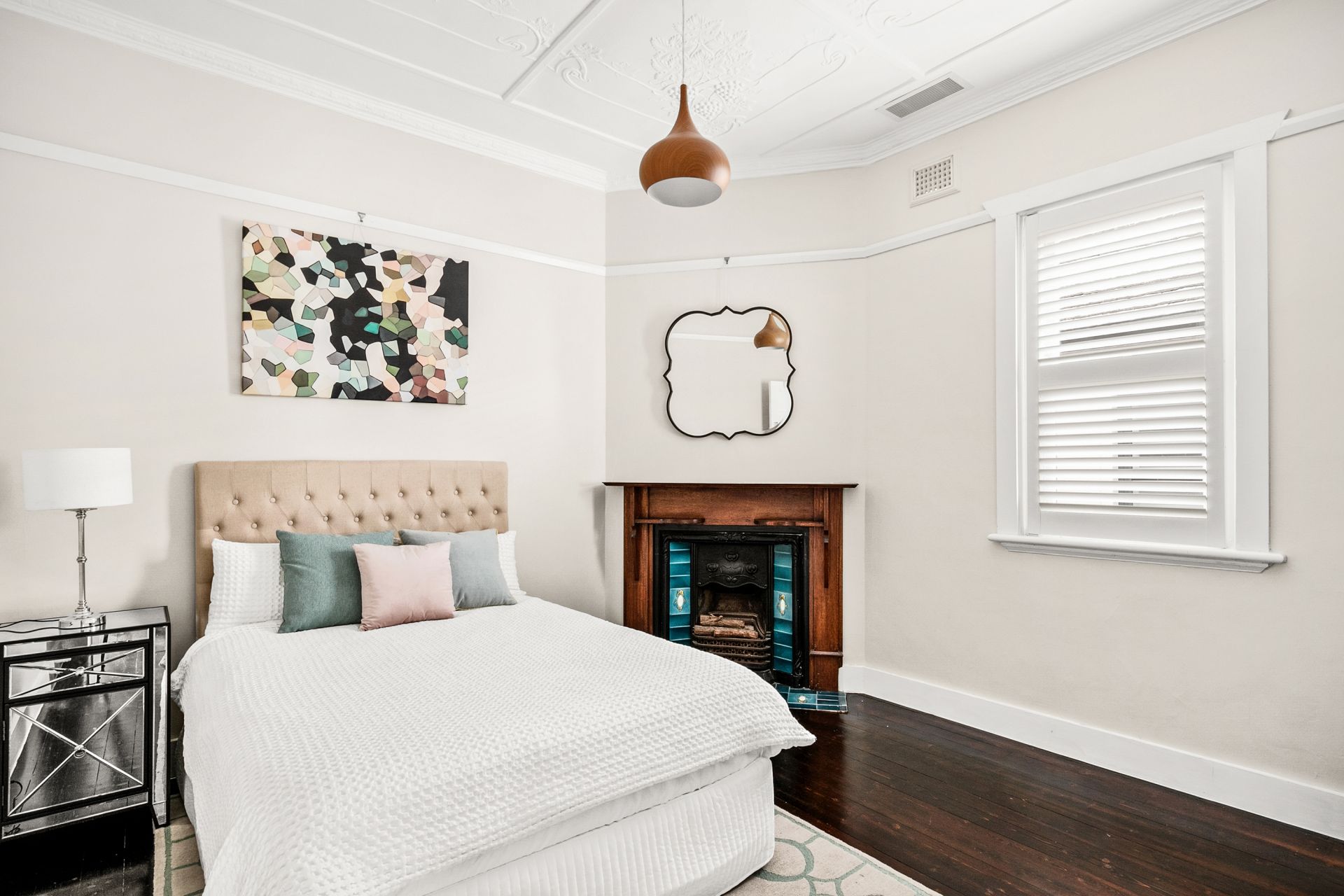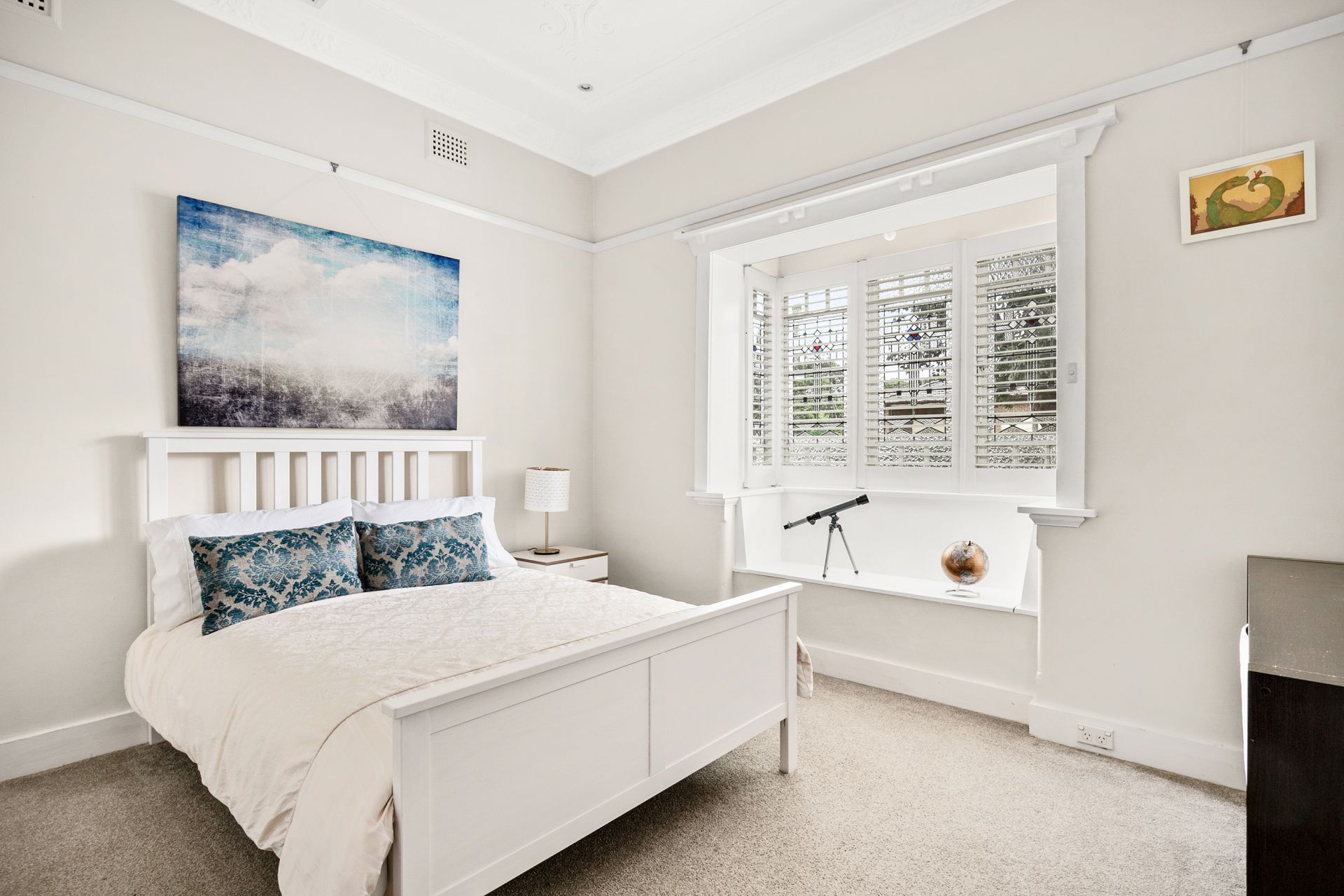 - Leadlight windows and timber picture rails.