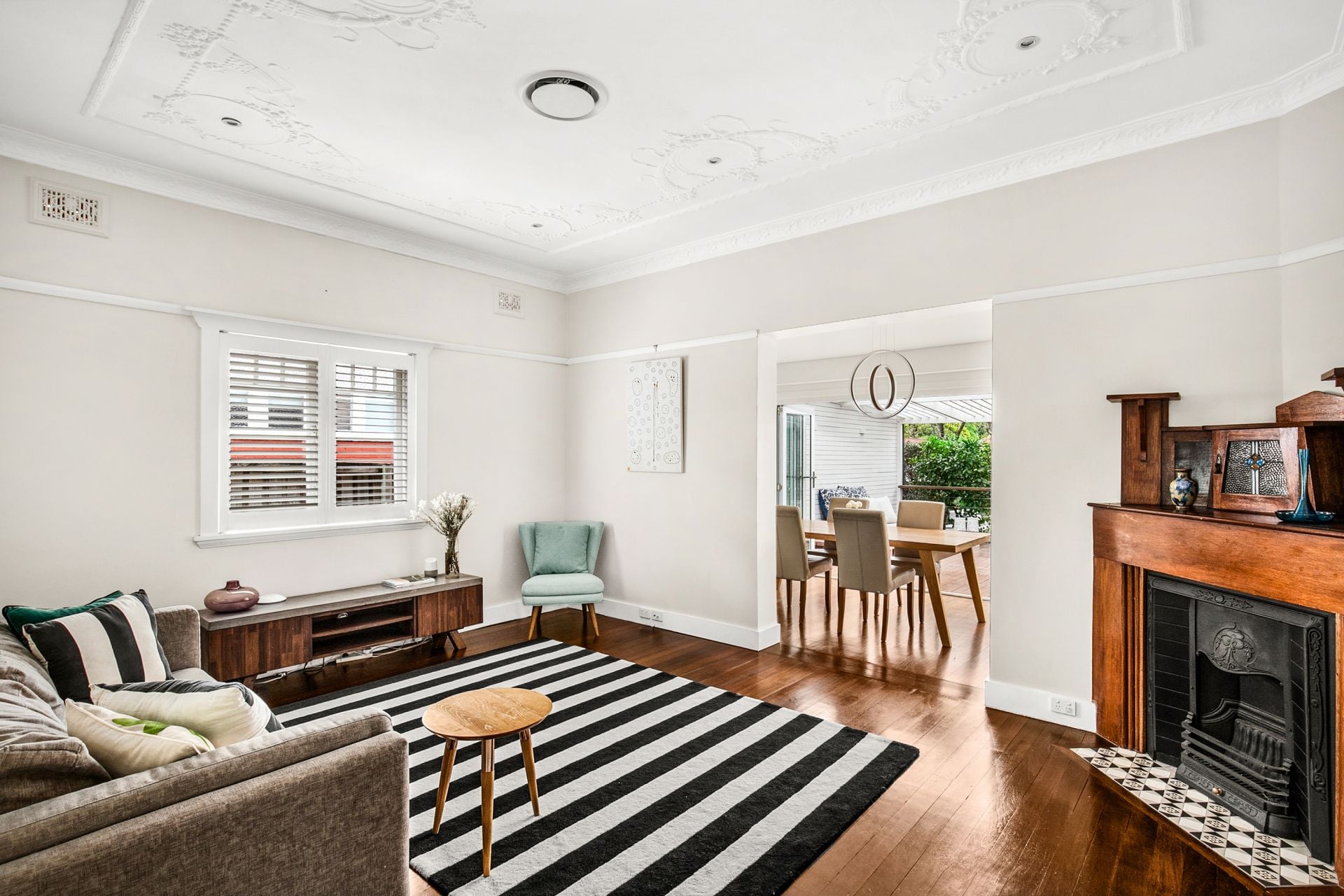 - Federation grandeur with high ornate ceilings.