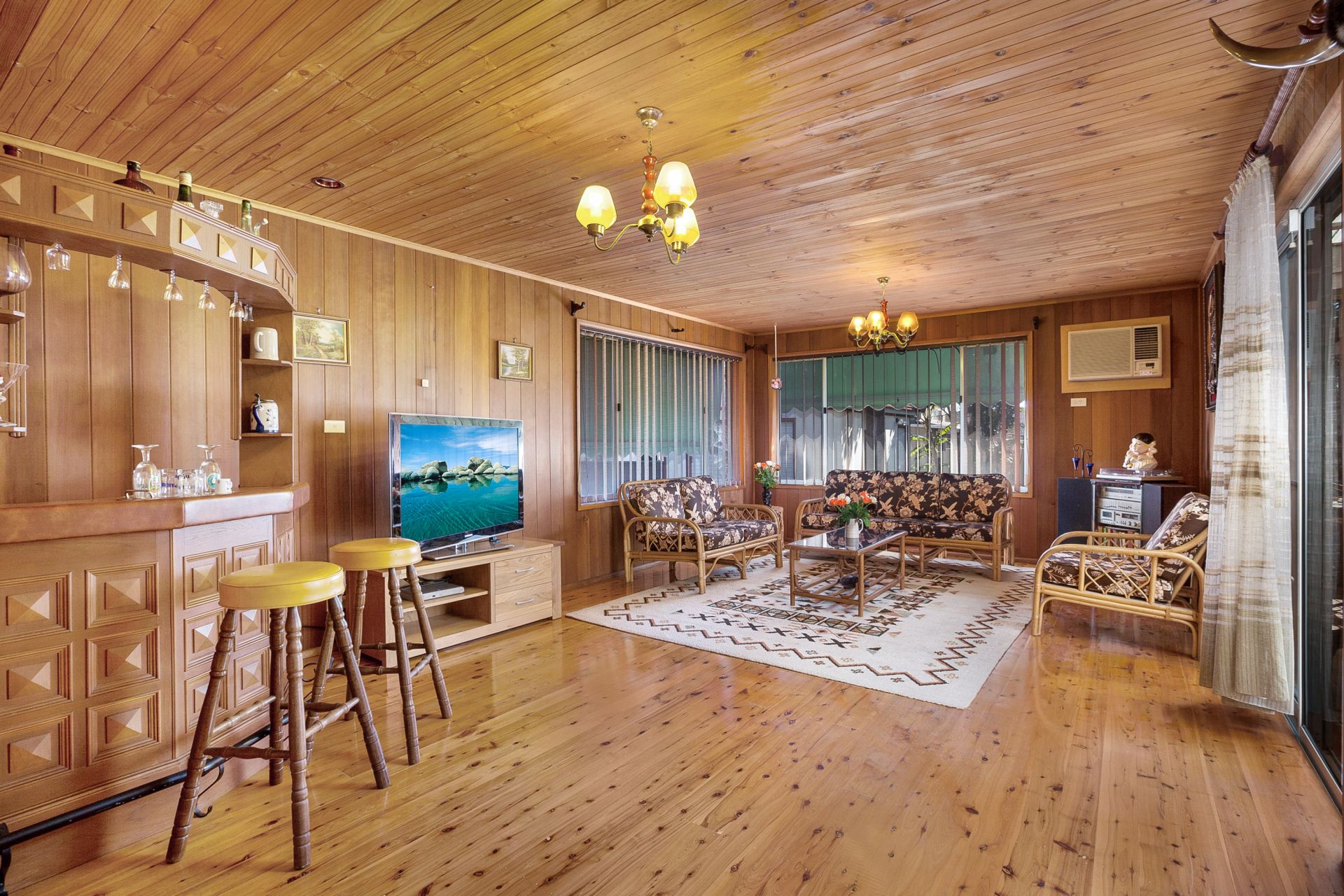- Two separate living spaces with dining