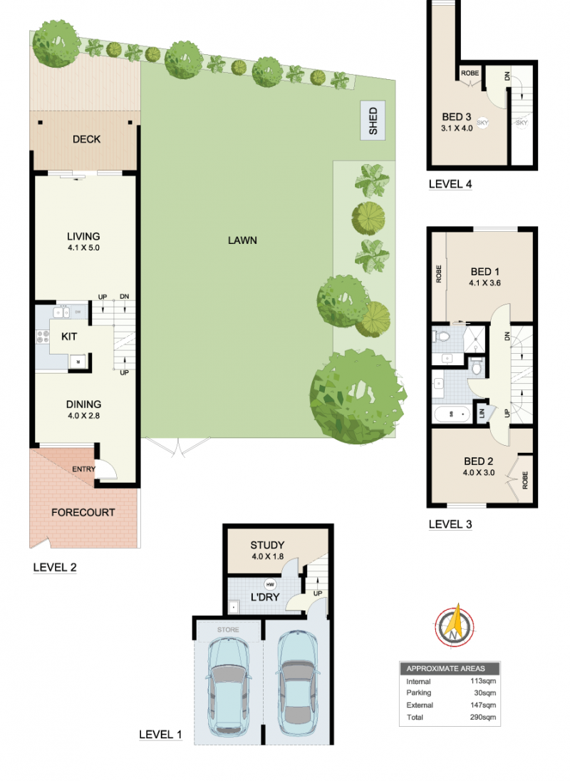 A quality modern townhouse with a generous rear yard and house like proportions