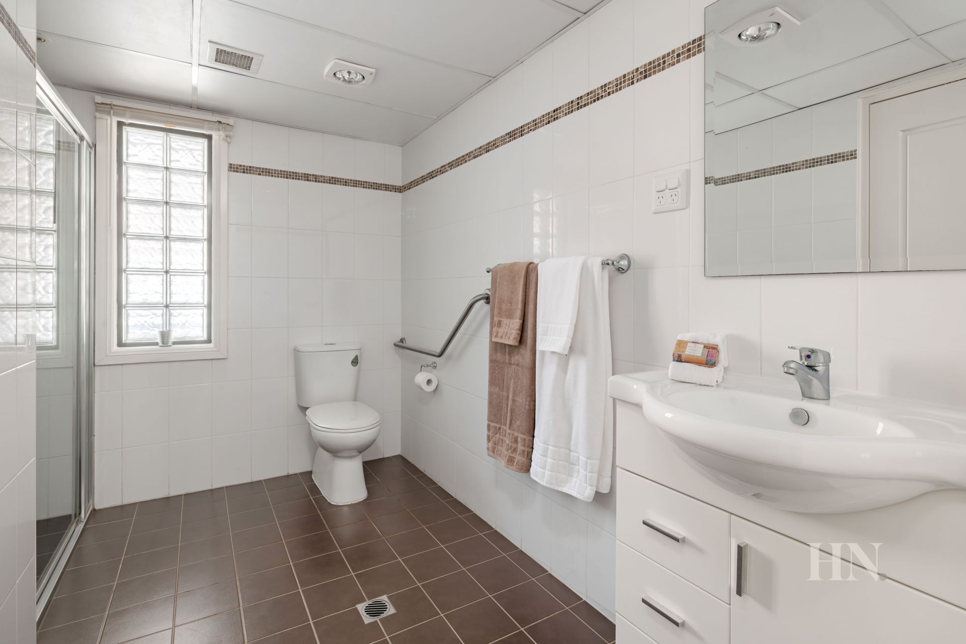 Wheelchair accessible bathroom and separate internal laundry