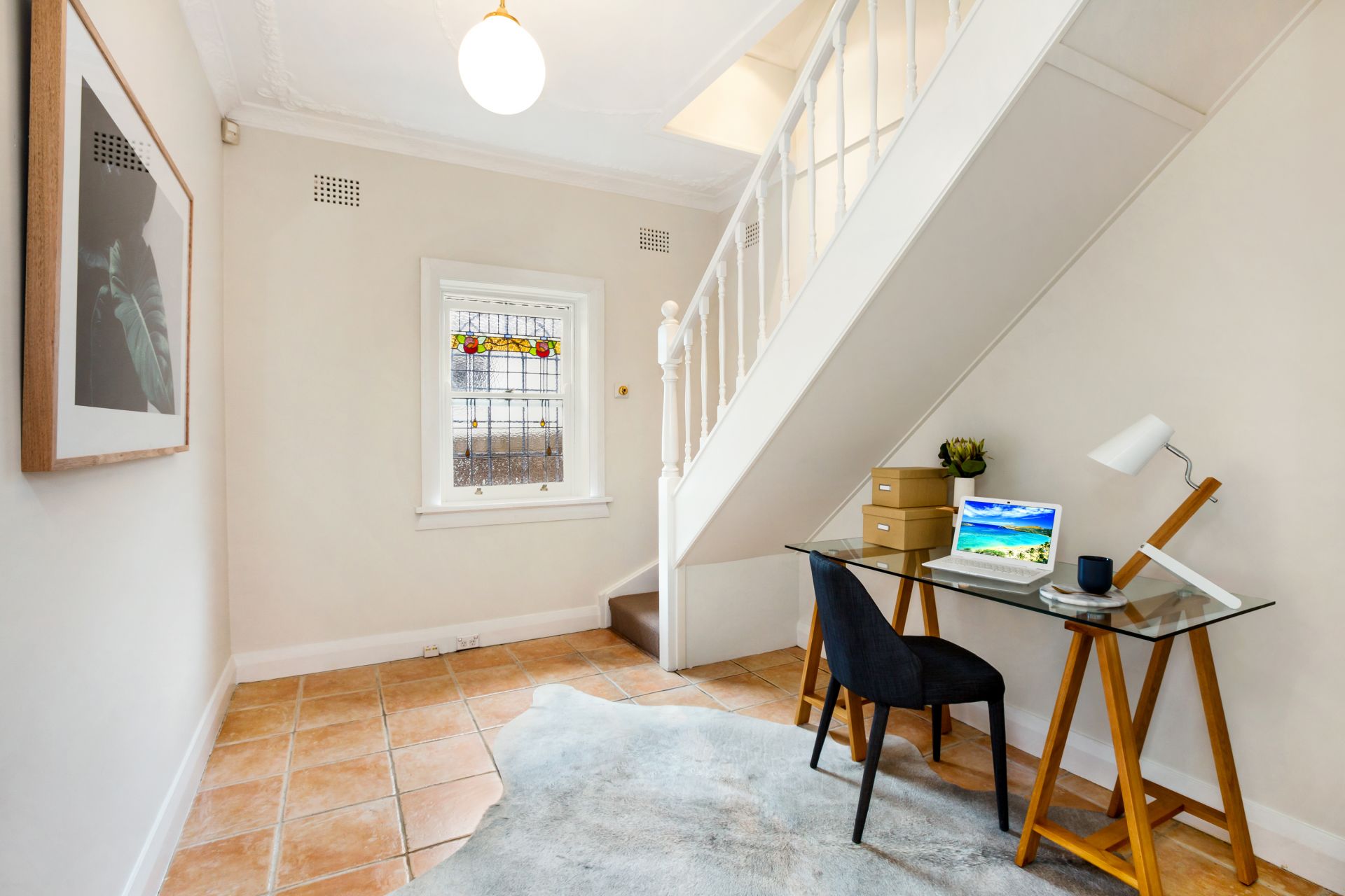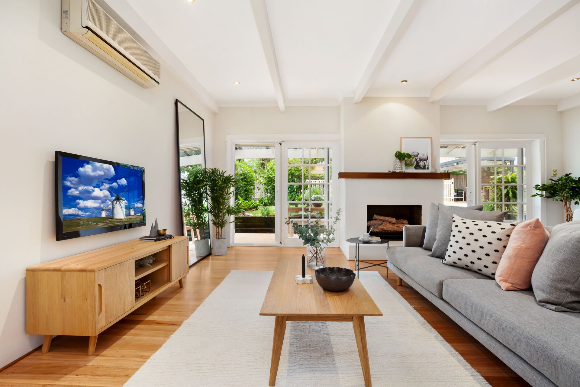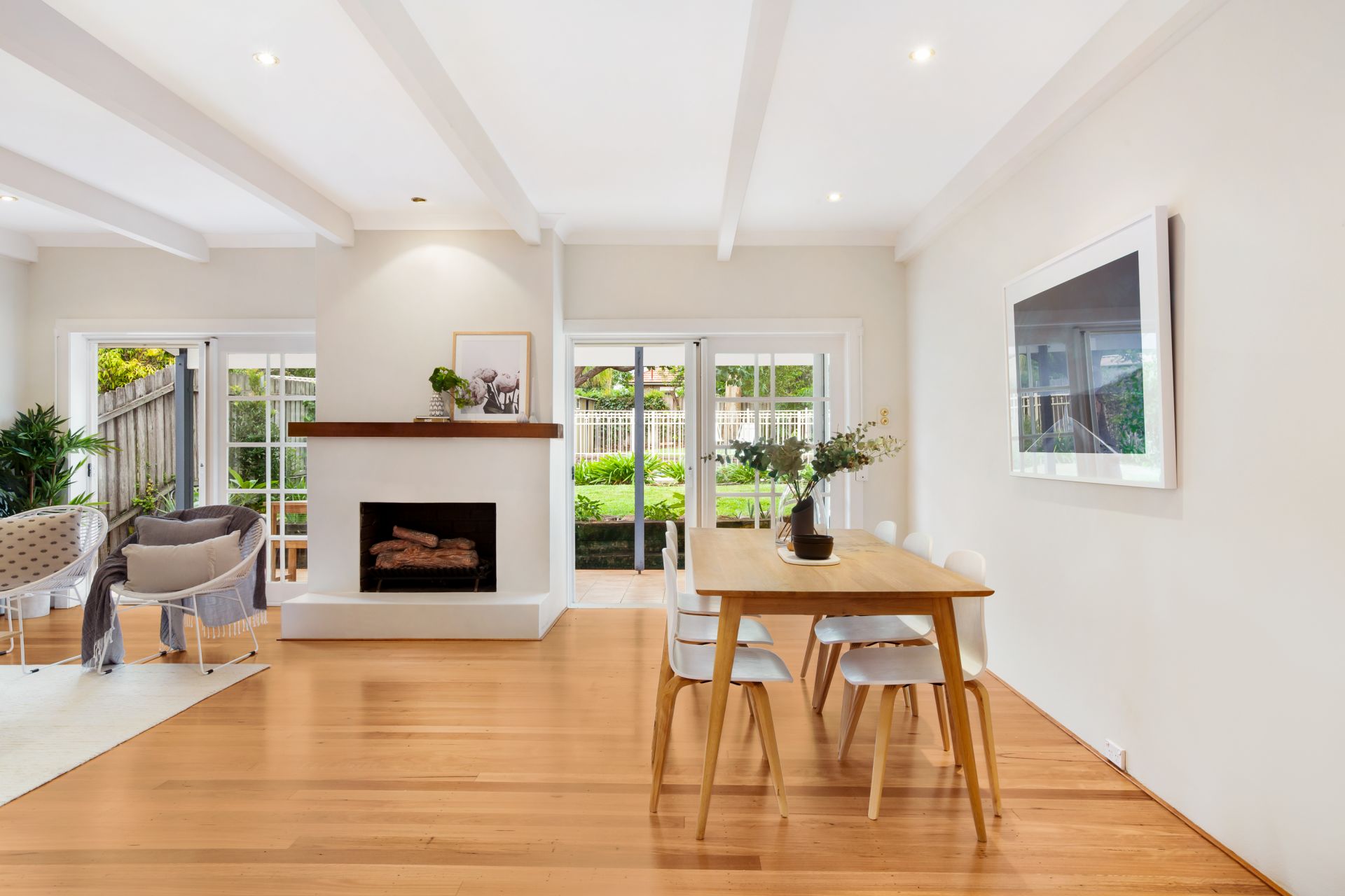 - High ceilings, fireplace and timber doors to classic terrace