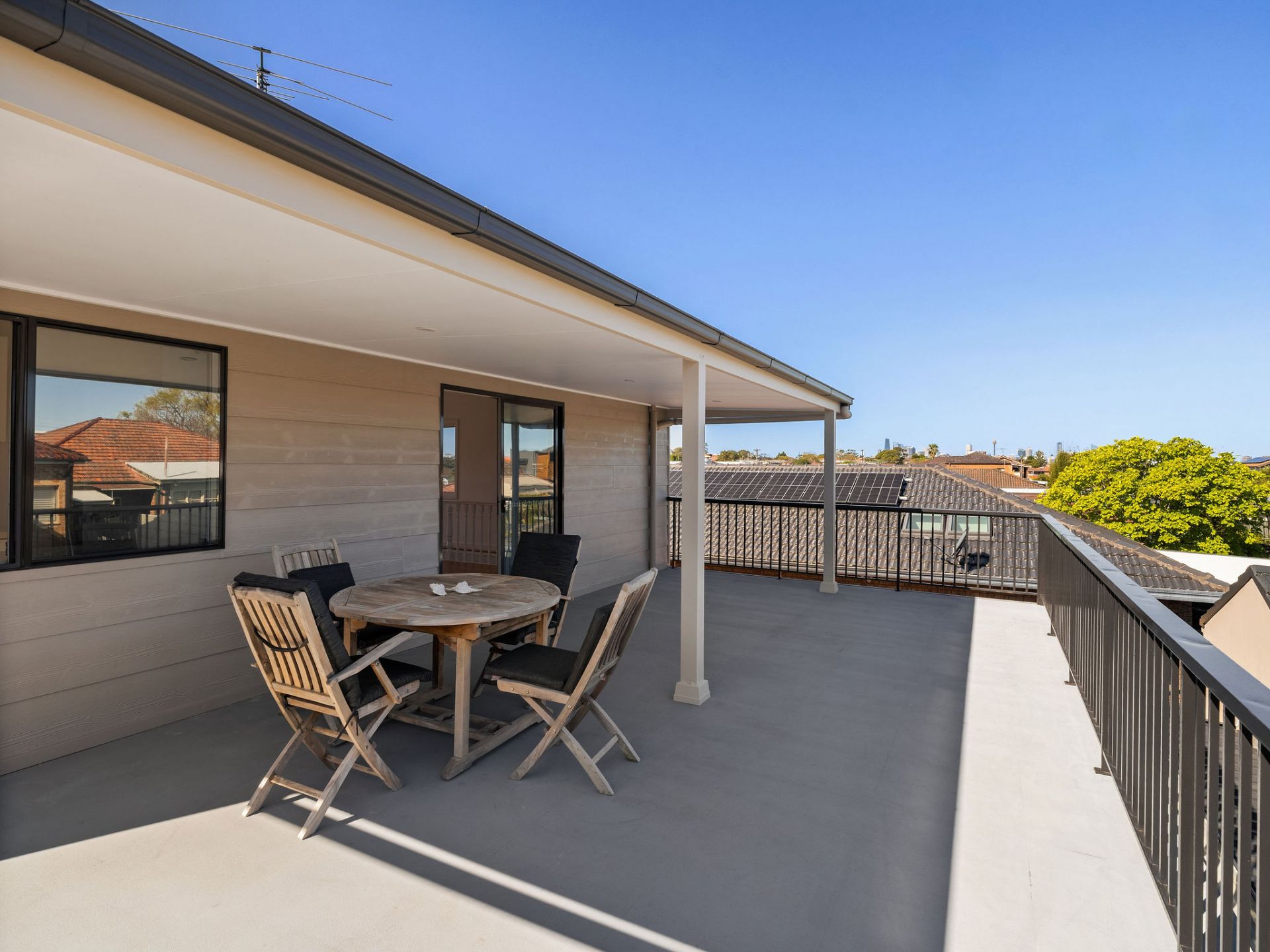 Expansive balcony w` uninterrupted skyline views