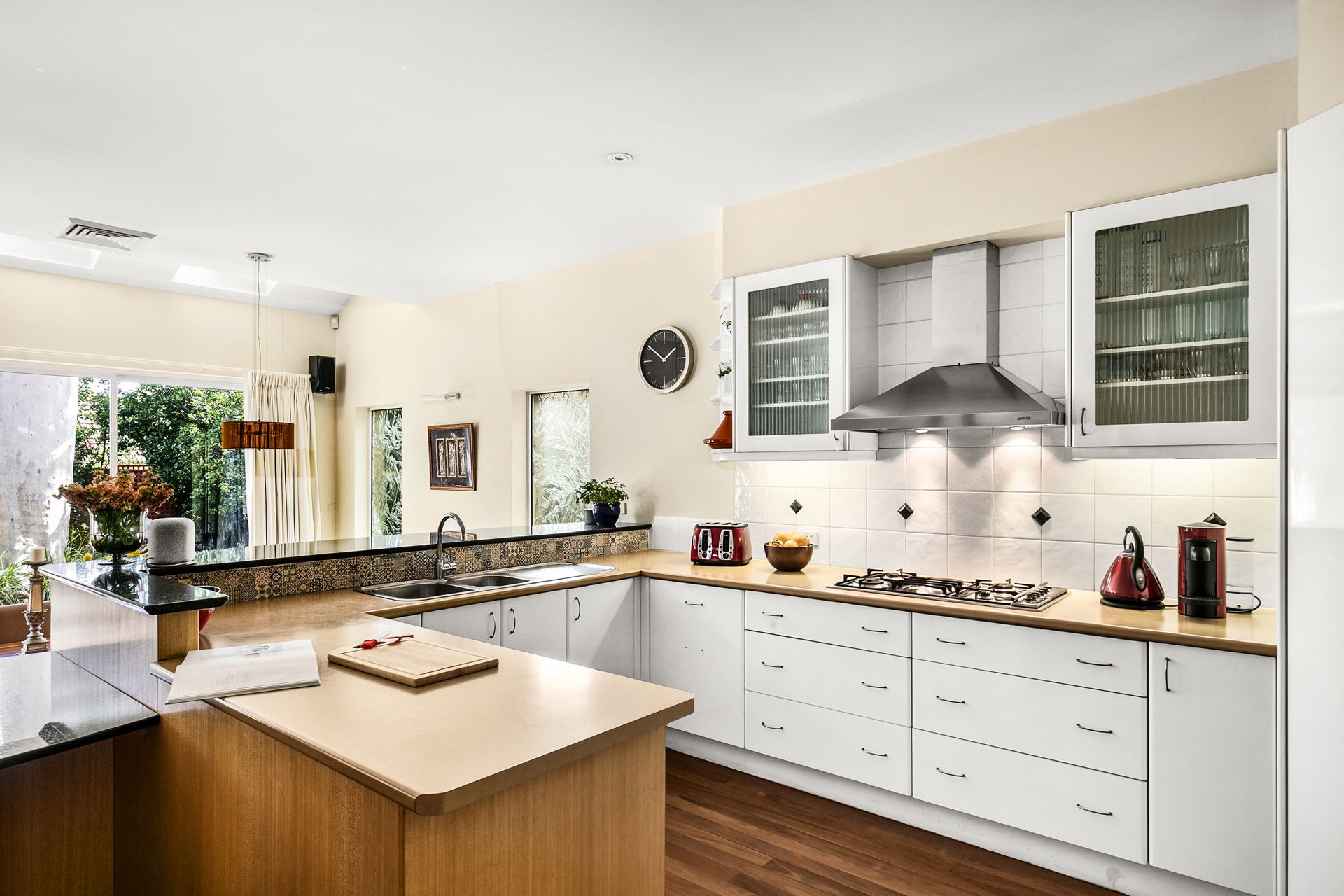 Open plan Caesarstone and gas island kitchen