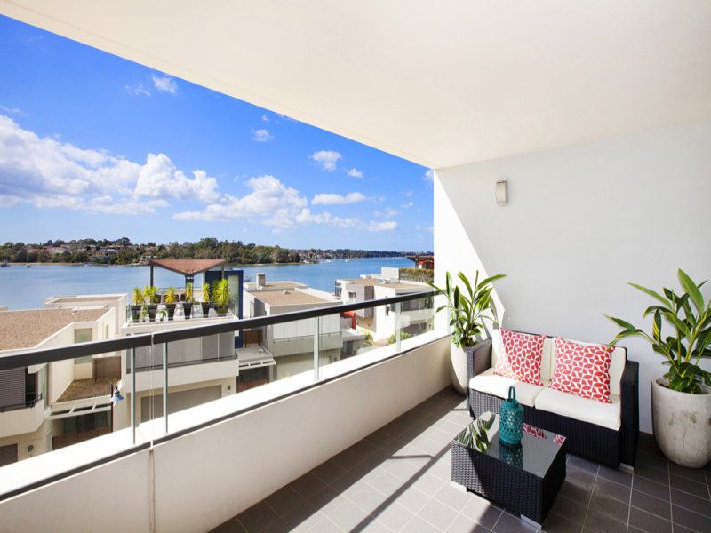 Panoramic Water Views Over Hen & Chicken Bay, Cabarita Park and City skyline, highlight this elevated 4th floor three bedroom apartment with contemporary stone, stainless steel finishes and Miele appliances.